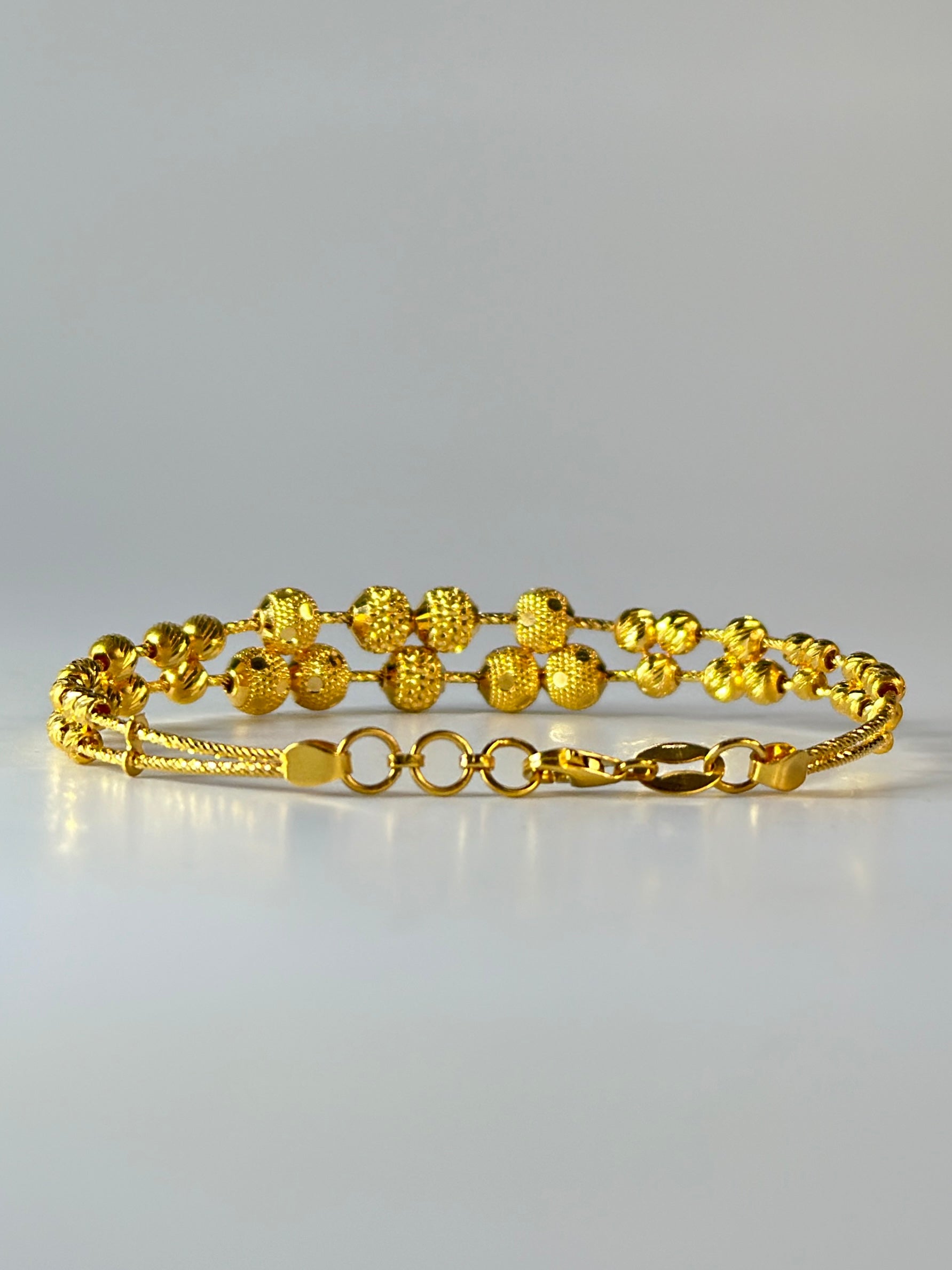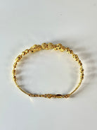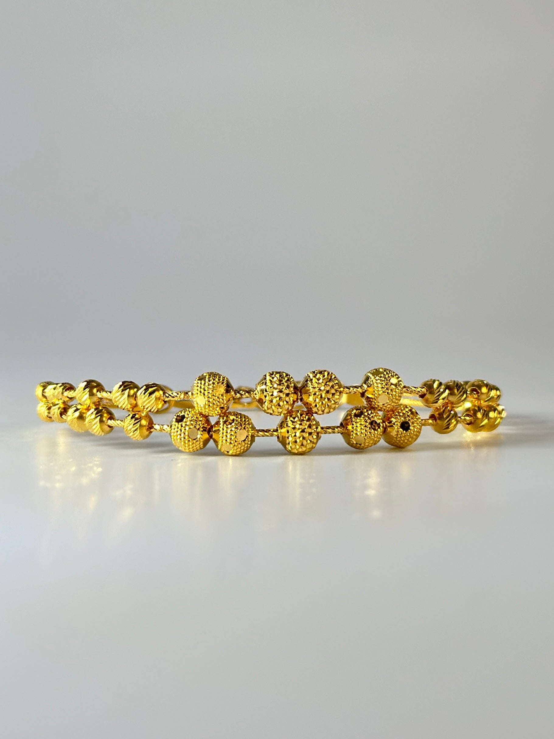 Exude timeless elegance with this exquisite 22ct gold bangle, meticulously crafted and hallmarked for authenticity and quality. Its rich, warm hue showcases the high purity of 22-carat gold, ensuring lasting value and brilliance. The intricate design, featuring delicate engravings, reflects superior craftsmanship and attention to detail, making it a perfect blend of traditional charm and contemporary style. Versatile enough to complement both classic and modern attire, this bangle can be worn alone for a subtle statement or stacked for a more opulent look, making it an ideal choice for any special occasion.