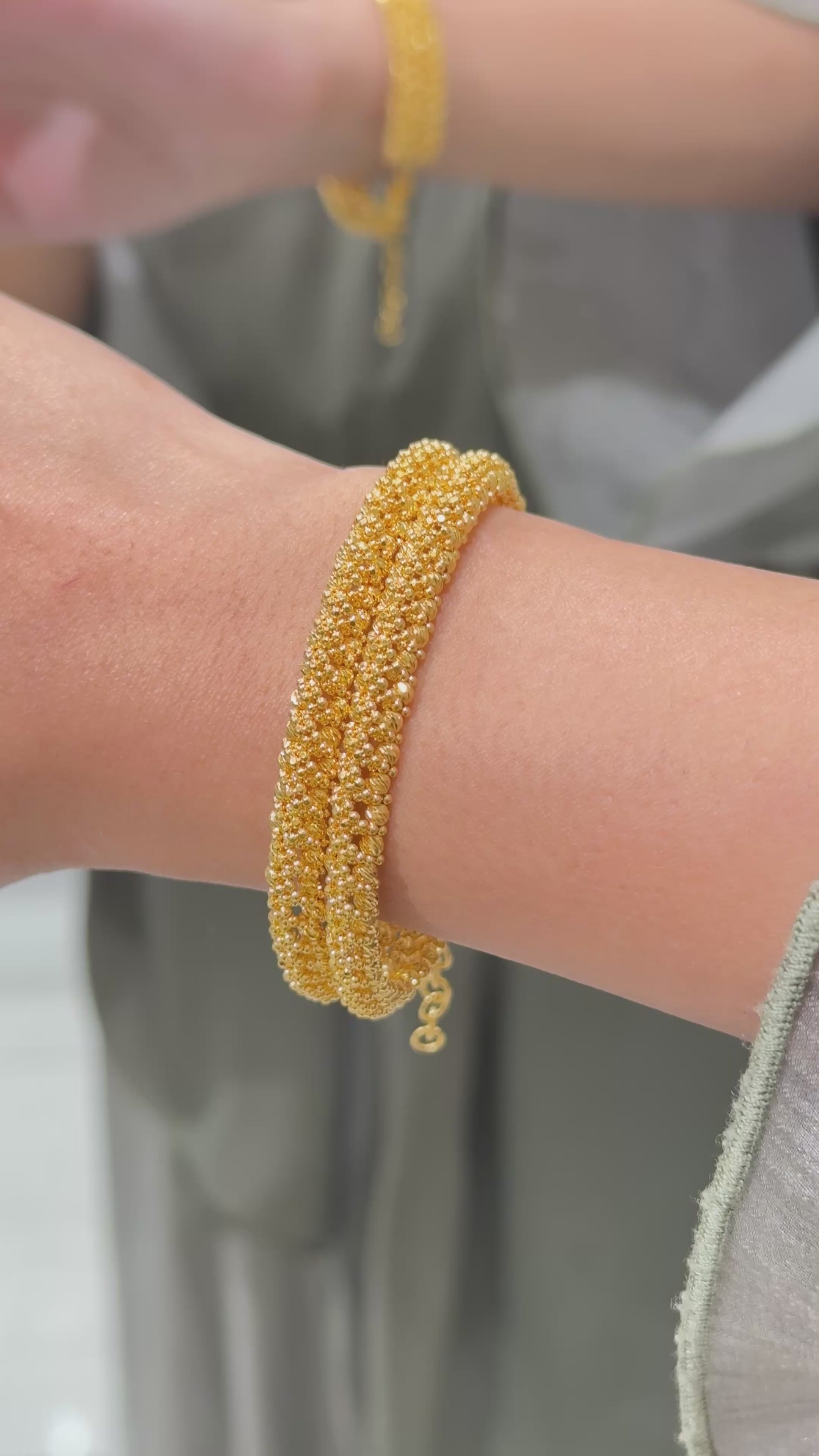 Gracefully crafted in radiant 22ct gold, this adjustable bangle embodies the essence of classic beauty. Designed with a refined, minimalist silhouette, it seamlessly blends tradition with comfort. The elegant form is adjustable between sizes 2.2 to 2.10, offering a perfect fit for varying wrist sizes without compromising on style or structure.
