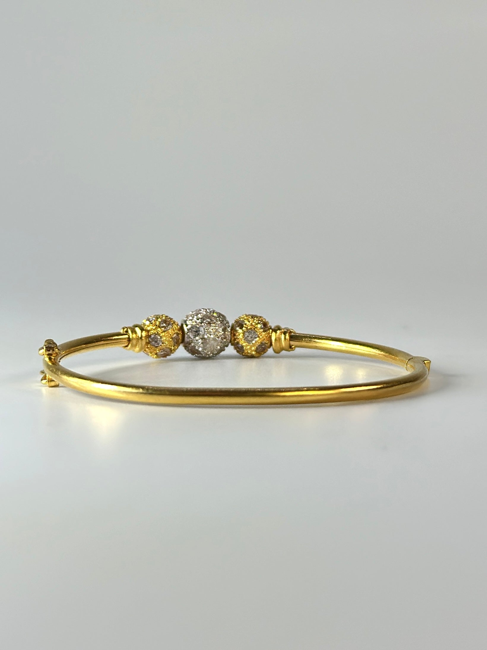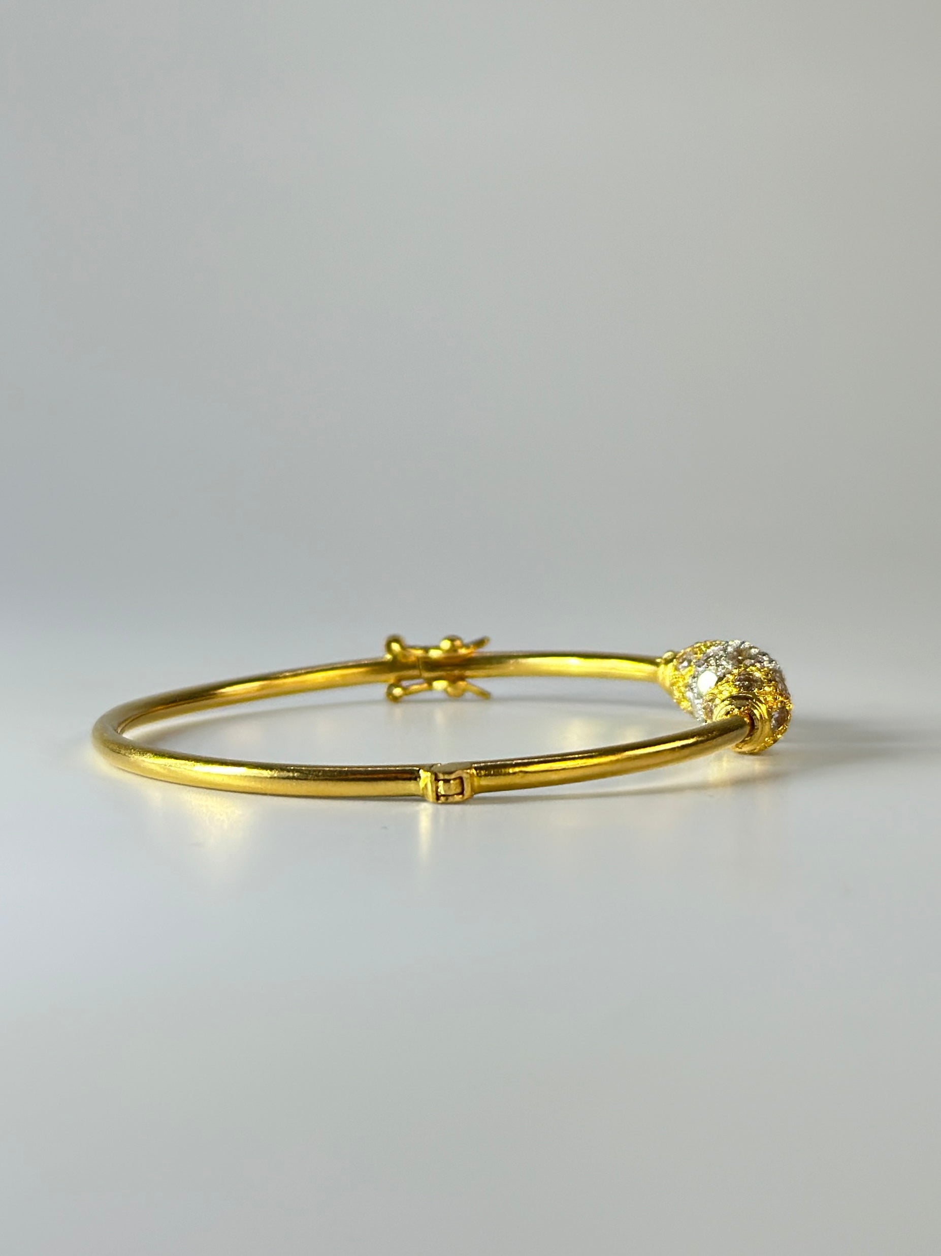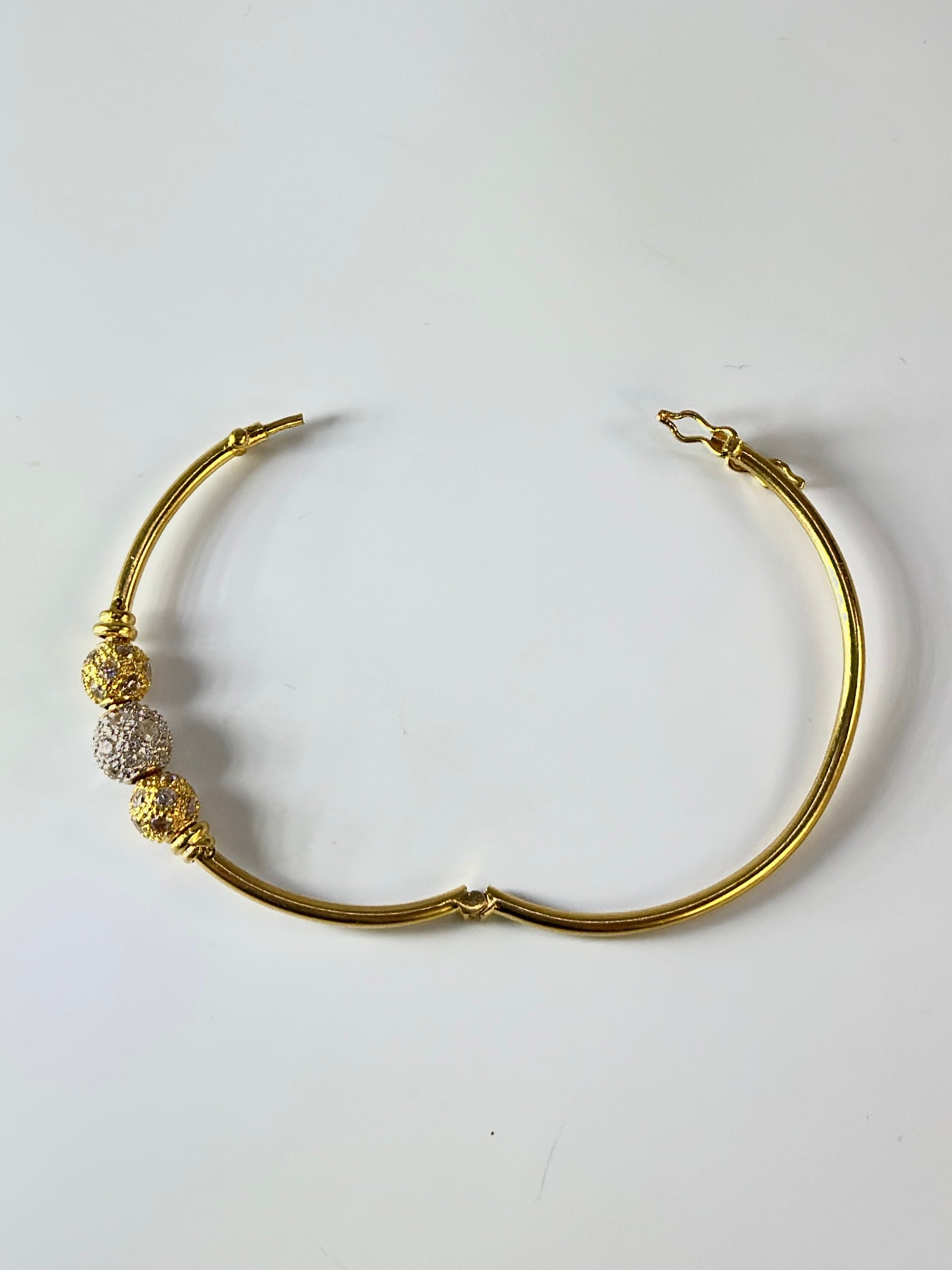 Exude timeless elegance with this exquisite 22ct gold bangle, meticulously crafted and hallmarked for authenticity and quality. Its rich, warm hue showcases the high purity of 22-carat gold, ensuring lasting value and brilliance. The intricate design, featuring delicate engravings, reflects superior craftsmanship and attention to detail, making it a perfect blend of traditional charm and contemporary style. Versatile enough to complement both classic and modern attire, this bangle can be worn alone for a subtle statement or stacked for a more opulent look, making it an ideal choice for any special occasion.
