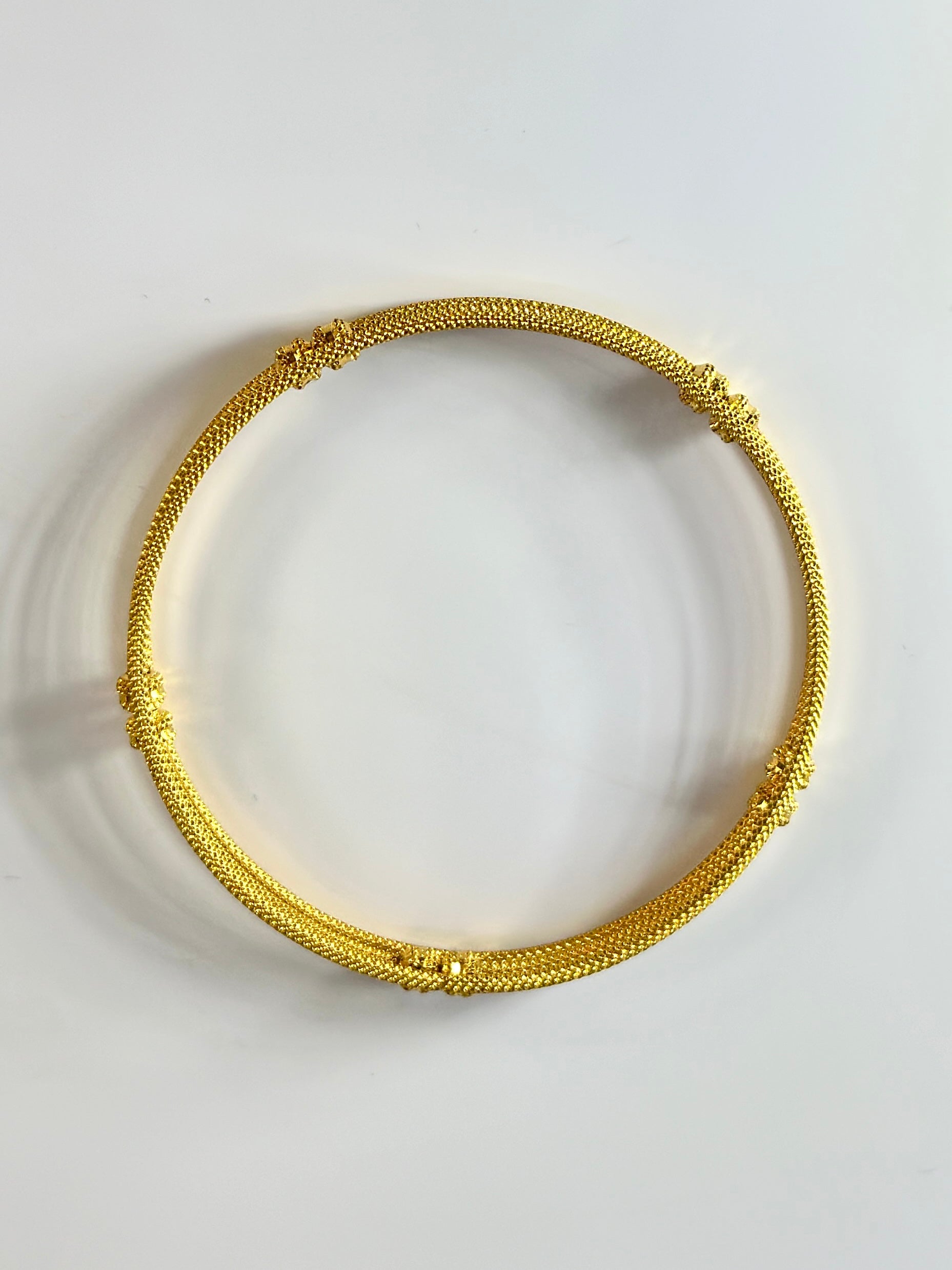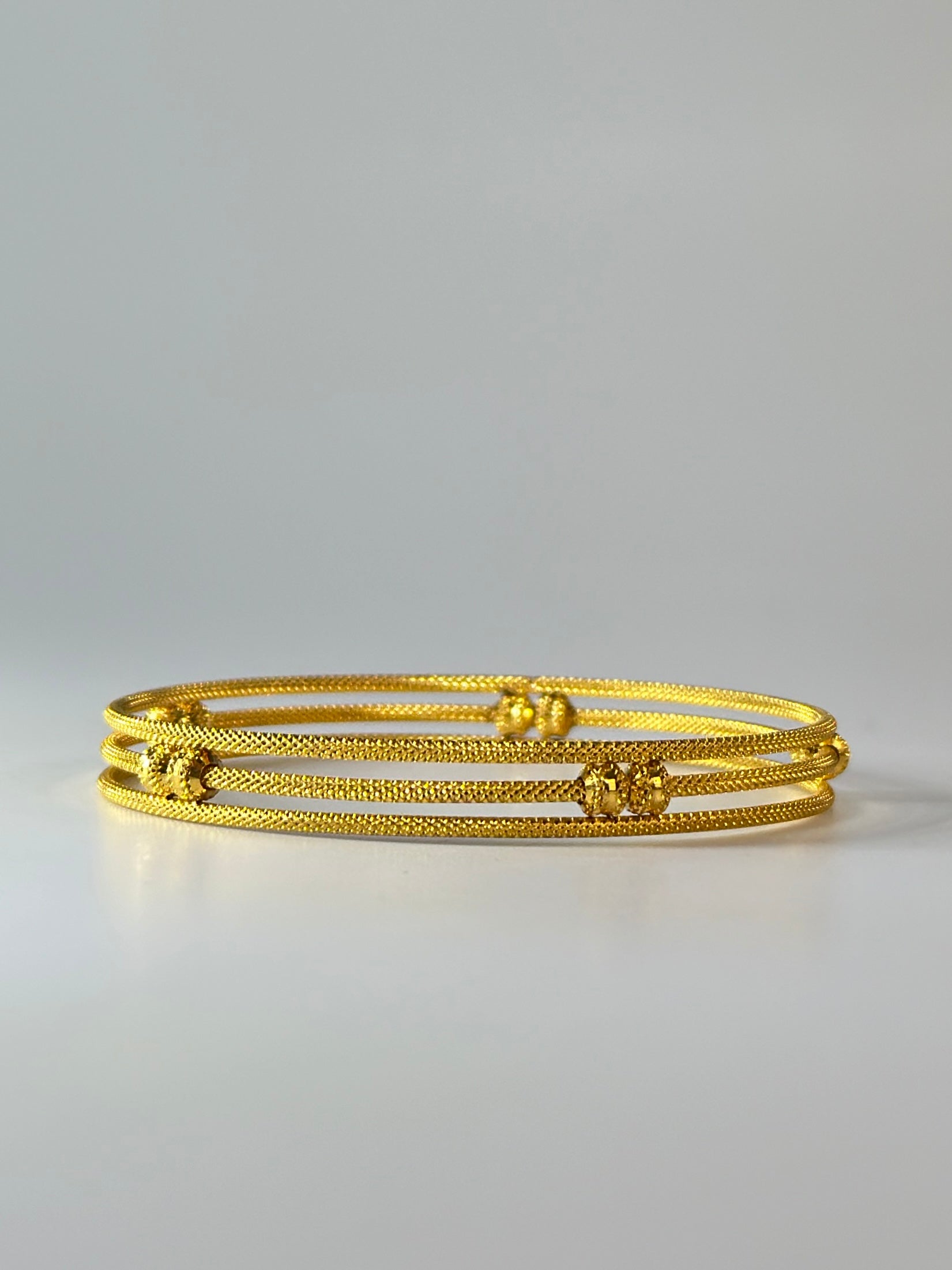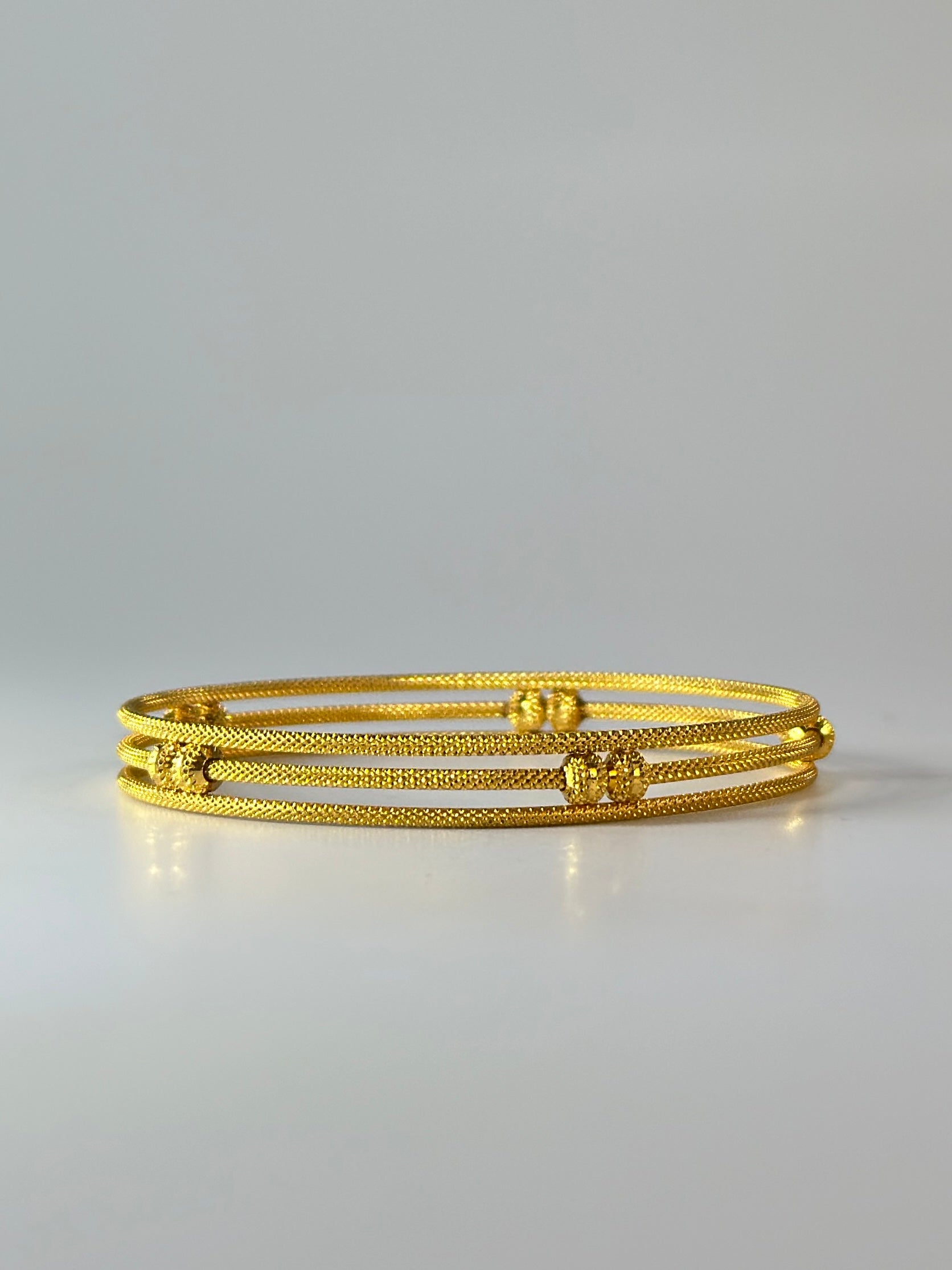 Exude timeless elegance with this exquisite 22ct gold bangle, meticulously crafted and hallmarked for authenticity and quality. Its rich, warm hue showcases the high purity of 22-carat gold, ensuring lasting value and brilliance. The intricate design, featuring delicate engravings, reflects superior craftsmanship and attention to detail, making it a perfect blend of traditional charm and contemporary style. Versatile enough to complement both classic and modern attire, this bangle can be worn alone for a subtle statement or stacked for a more opulent look, making it an ideal choice for any special occasion.