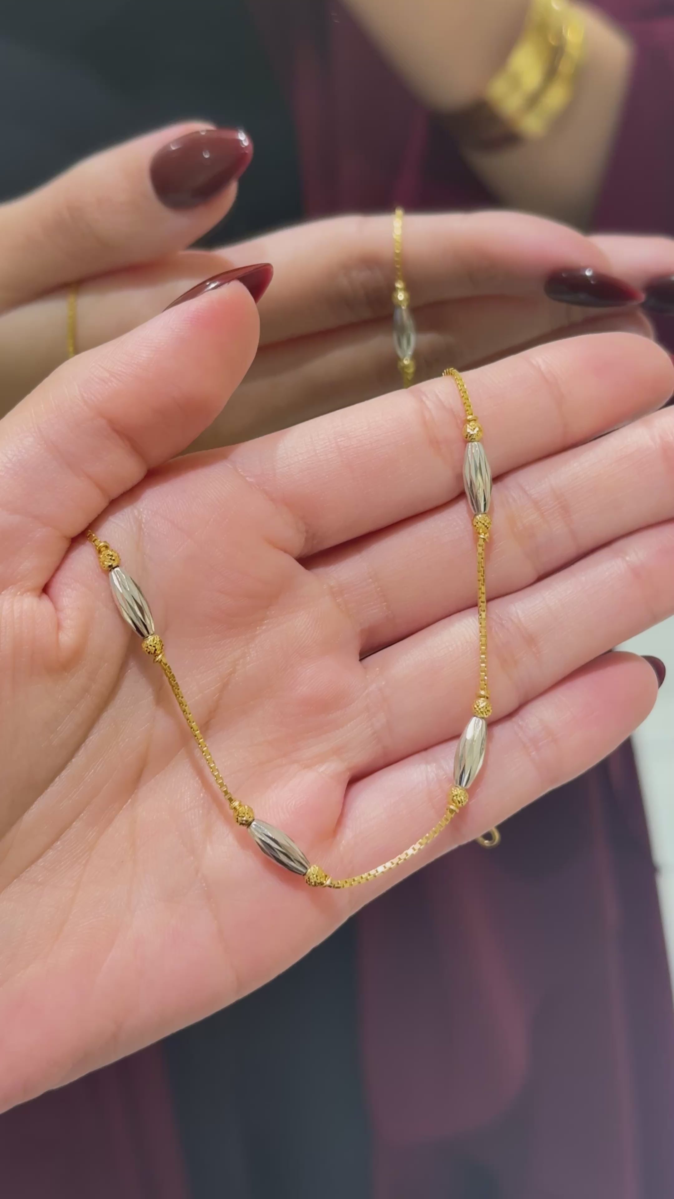 Delicately handcrafted from 22-carat gold, this exquisite anklet captures the essence of refined luxury. Designed to drape beautifully around the ankle, it adds a subtle touch of radiance and sophistication to any look. Whether worn as an everyday indulgence or for a special occasion, this piece embodies timeless elegance and effortless charm.