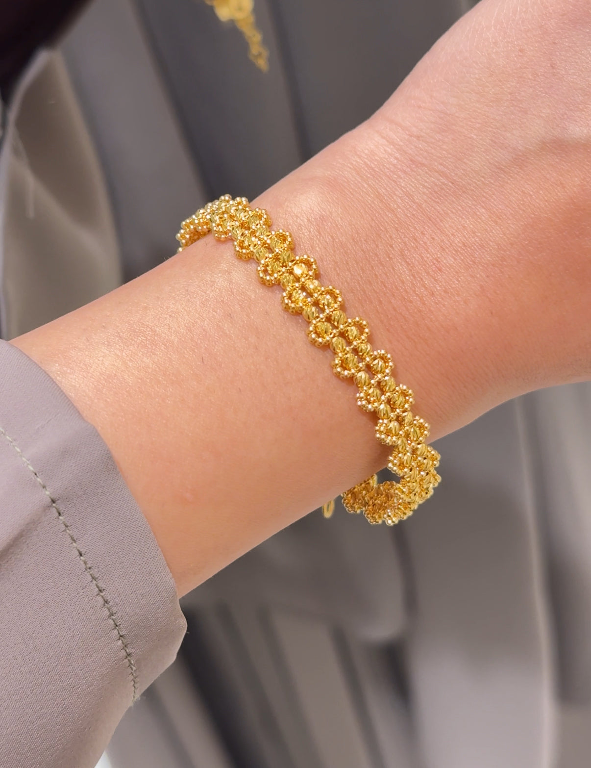 The Celestial Spark Adjustable Bangle brings a touch of brilliance to any jewelry collection. Designed with intricate detailing and a smooth, polished finish, this bangle is as radiant as it is refined. The elegant form is adjustable between sizes 2.2 to 2.10, offering a perfect fit for varying wrist sizes without compromising on style or structure. Its versatile design makes it the perfect accessory for both everyday wear and special occasions.