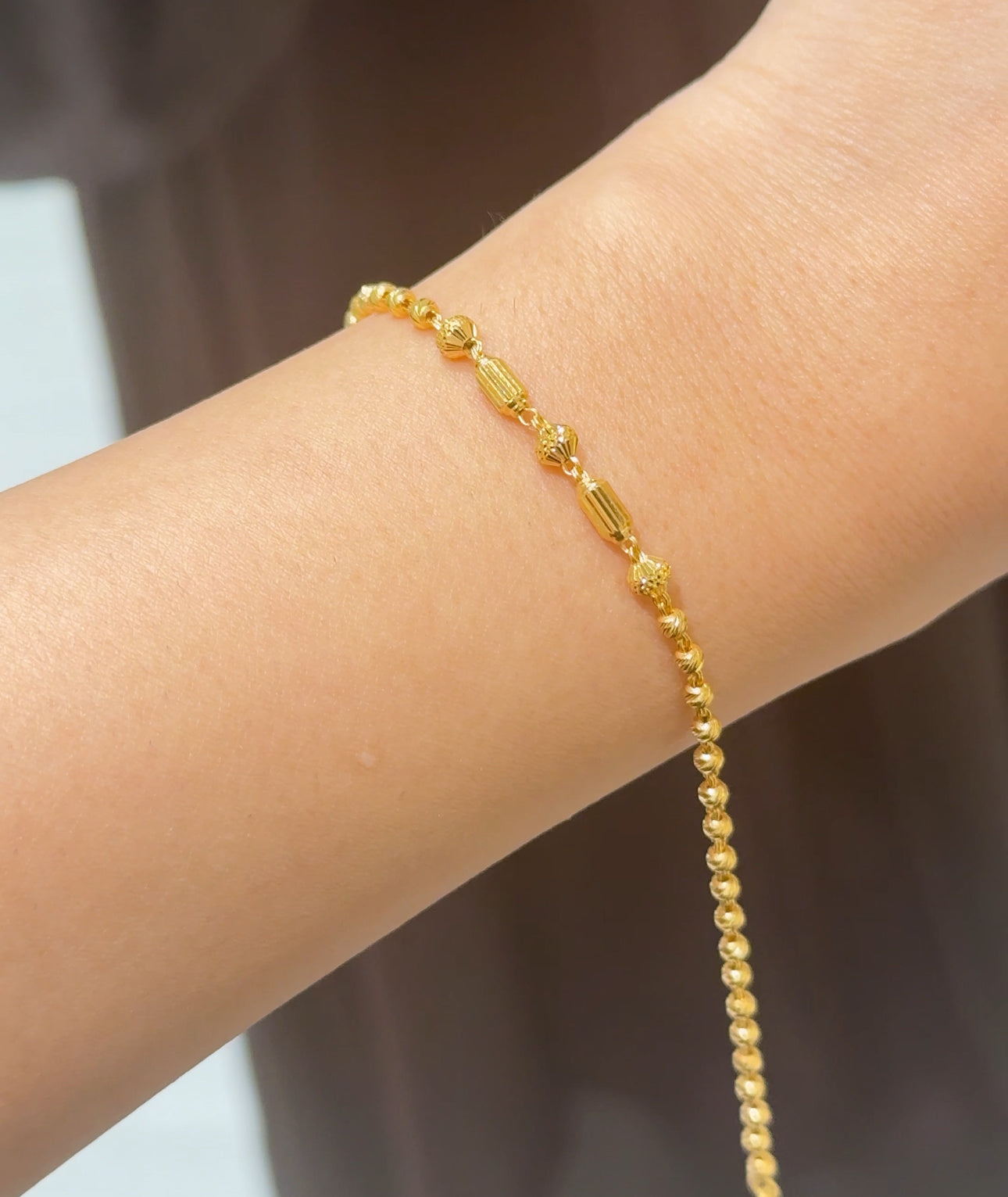 This elegant 22ct gold bracelet is crafted from high-quality 22-carat gold, offering a rich, radiant shine and a refined finish. Its classic design makes it perfect for everyday wear or special occasions, adding a touch of luxury to any look. A beautiful staple piece for any fine jewellery collection.