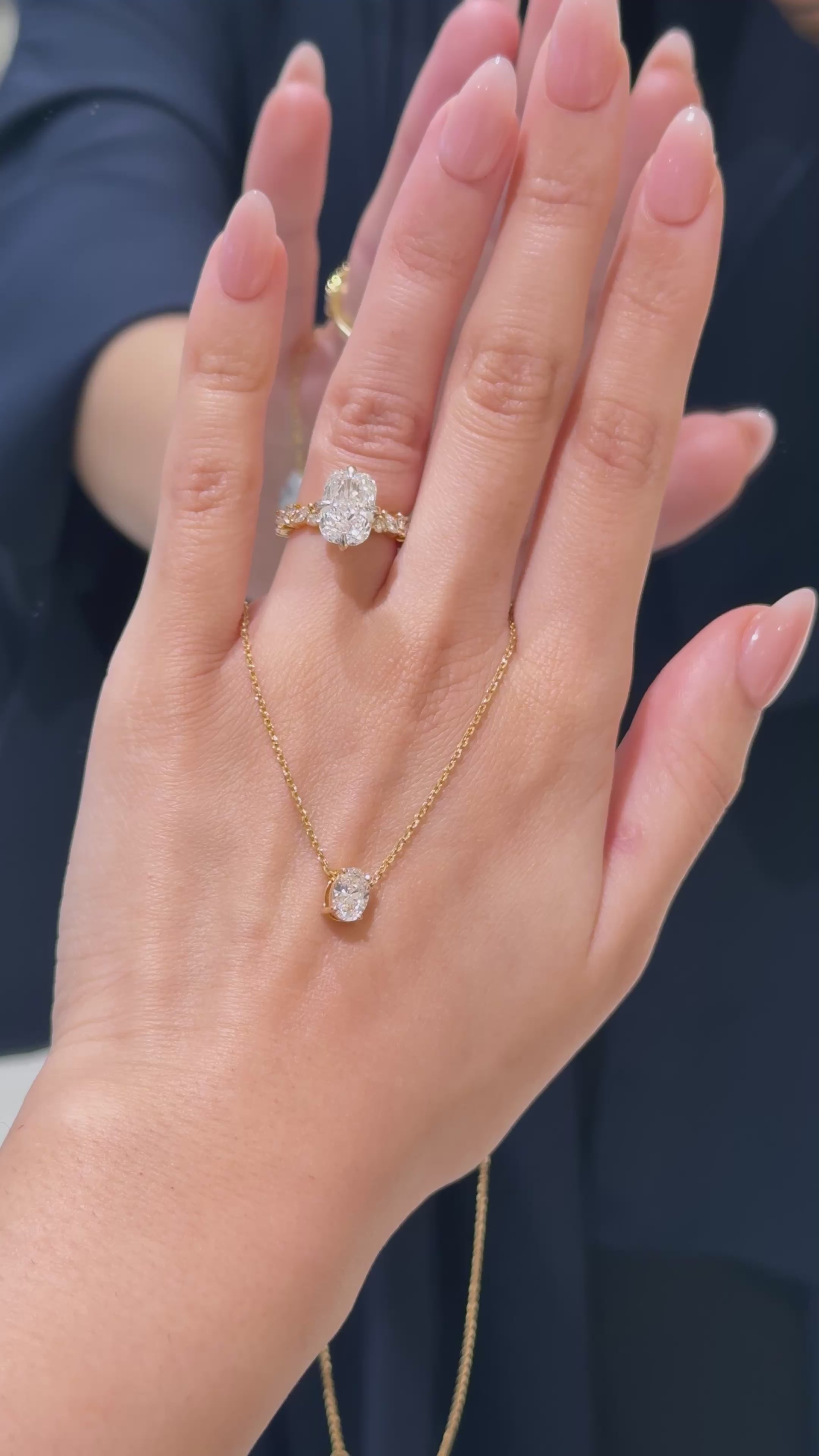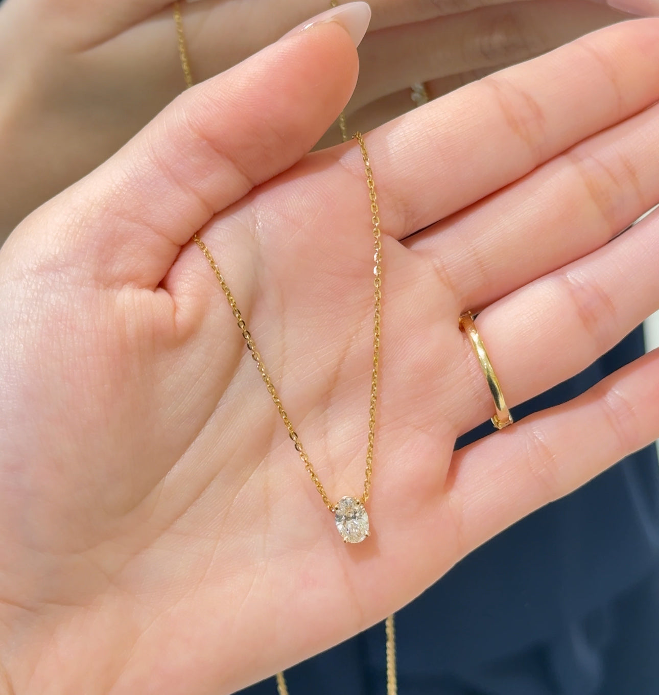 An exquisite oval diamond pendant, gracefully set in lustrous yellow gold. Its timeless design and radiant sparkle make it a refined piece of jewellery that can be treasured for years to come.