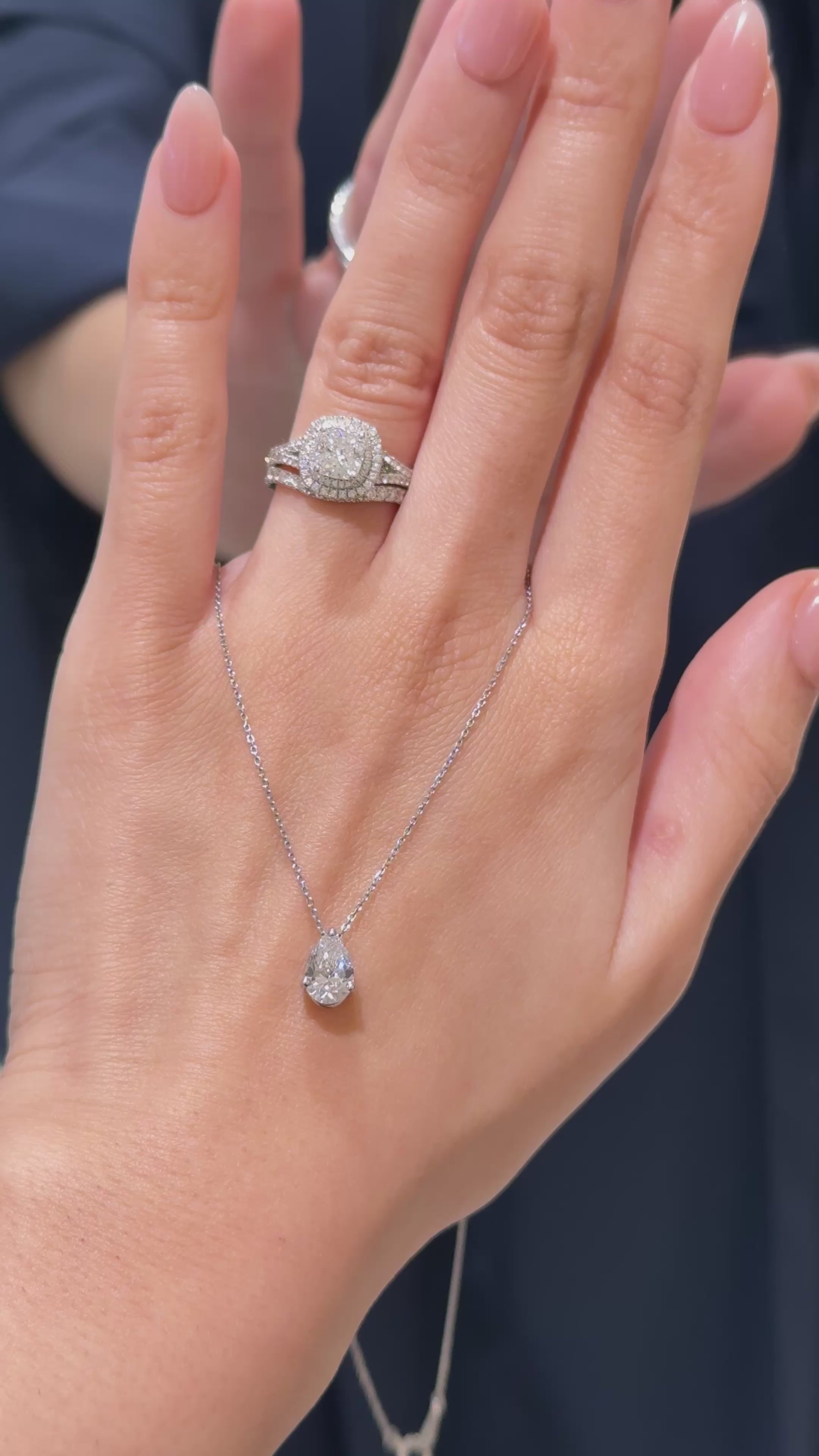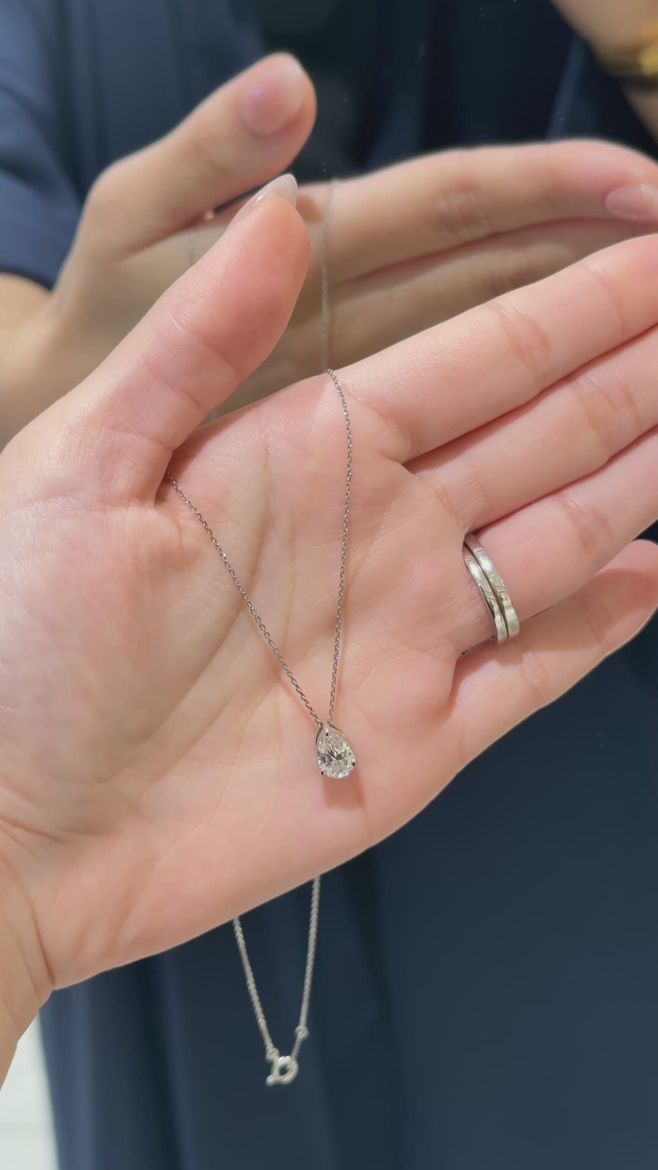 An exquisite oval diamond pendant, gracefully set in platinum. Its timeless design and radiant sparkle make it a refined piece of jewellery that can be treasured for years to come.