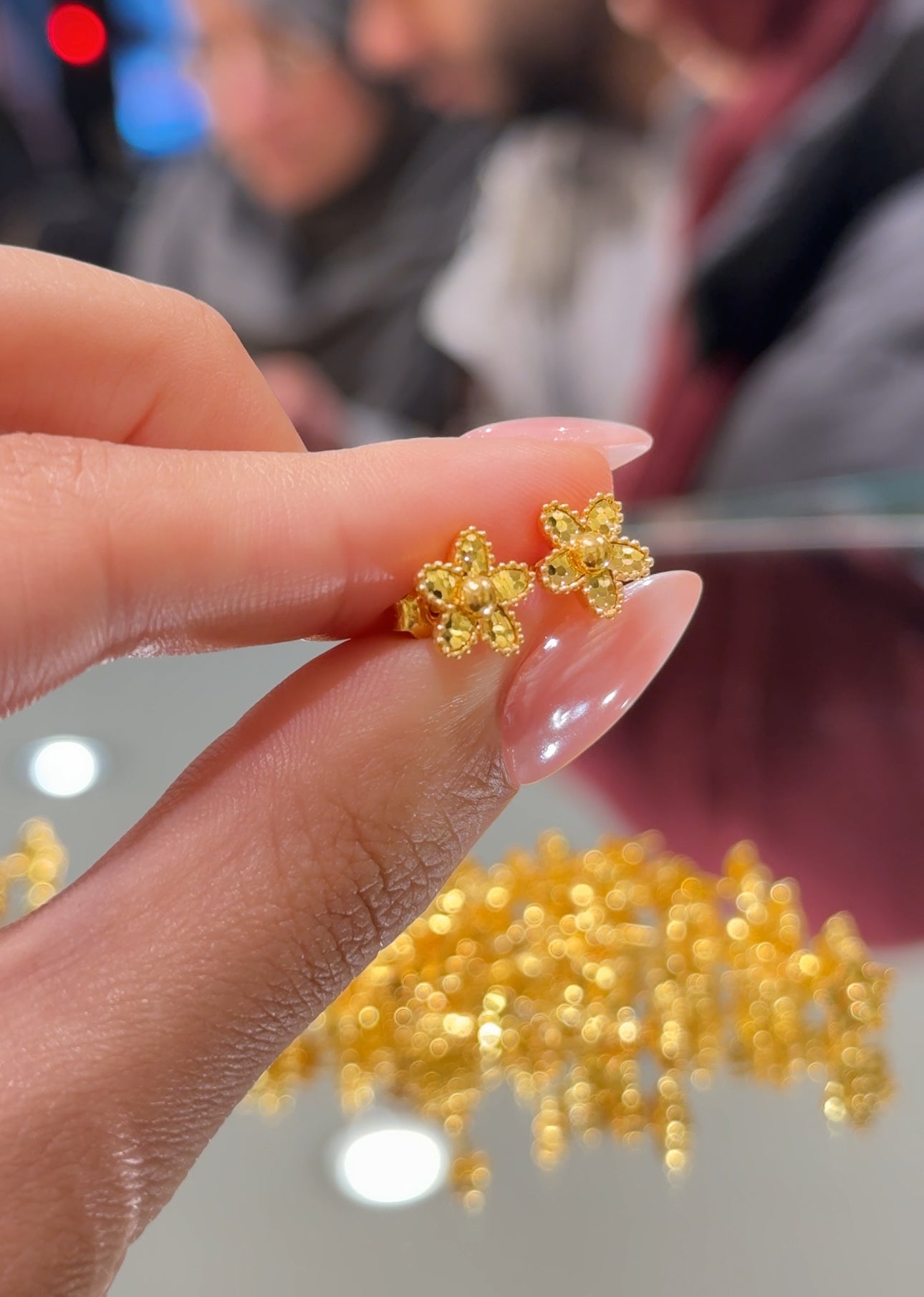 Delicate and charming, these small flower-shaped stud earrings add a touch of elegance to any look. Designed with simplicity in mind, they’re perfect for everyday wear or special occasions alike. Crafted for comfort and timeless style, these petite studs are a subtle statement of beauty.