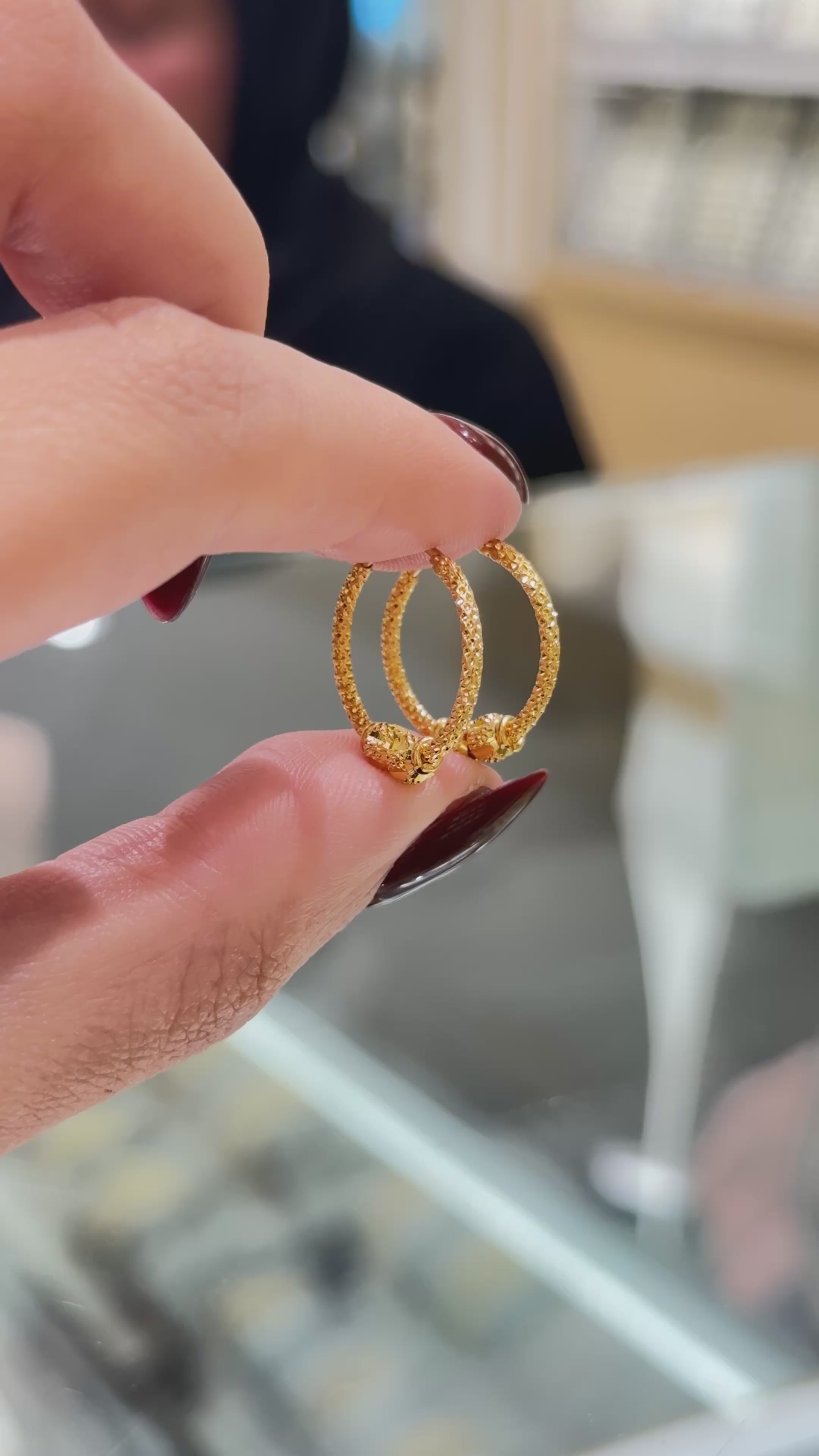 Experience the allure of pure sophistication with our 22ct Gold Hoop Earrings, meticulously handcrafted to embody timeless luxury. Each piece is sculpted from the finest 22-carat gold, radiating a warm, luminous glow that captures the essence of elegance. these hoops offer a harmonious balance of classic beauty and contemporary grace, an exquisite addition to any fine jewellery collection.