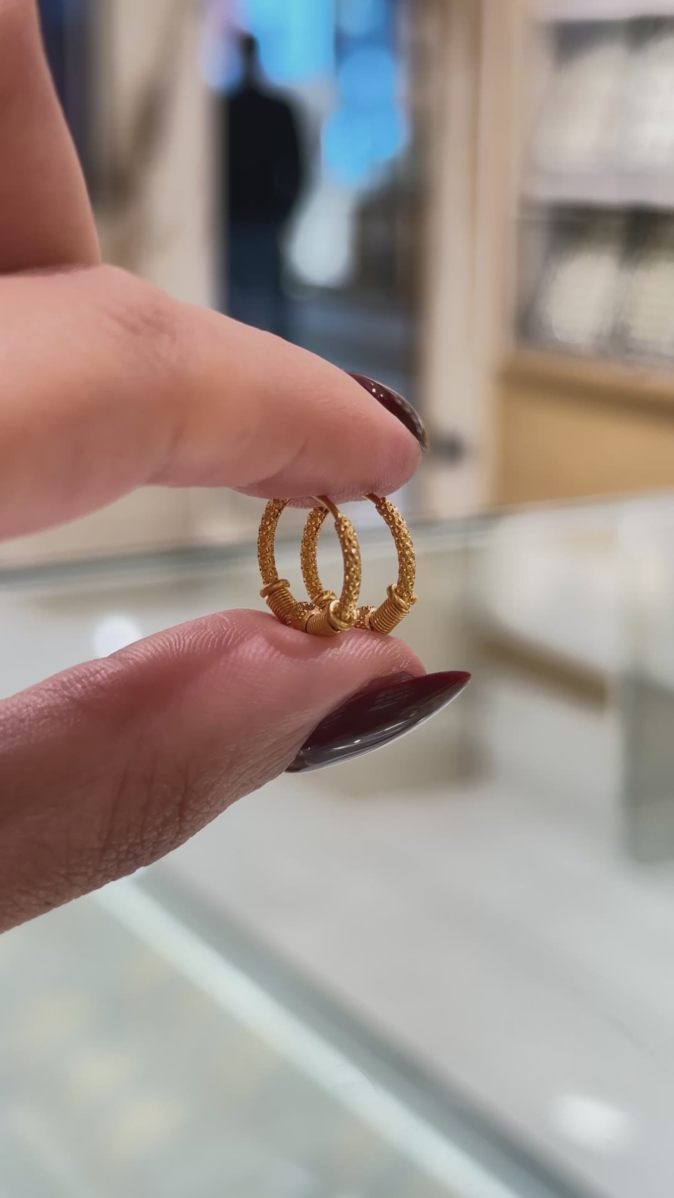 Experience the allure of pure sophistication with our 22ct Gold Hoop Earrings, meticulously handcrafted to embody timeless luxury. Each piece is sculpted from the finest 22-carat gold, radiating a warm, luminous glow that captures the essence of elegance. these hoops offer a harmonious balance of classic beauty and contemporary grace, an exquisite addition to any fine jewellery collection.