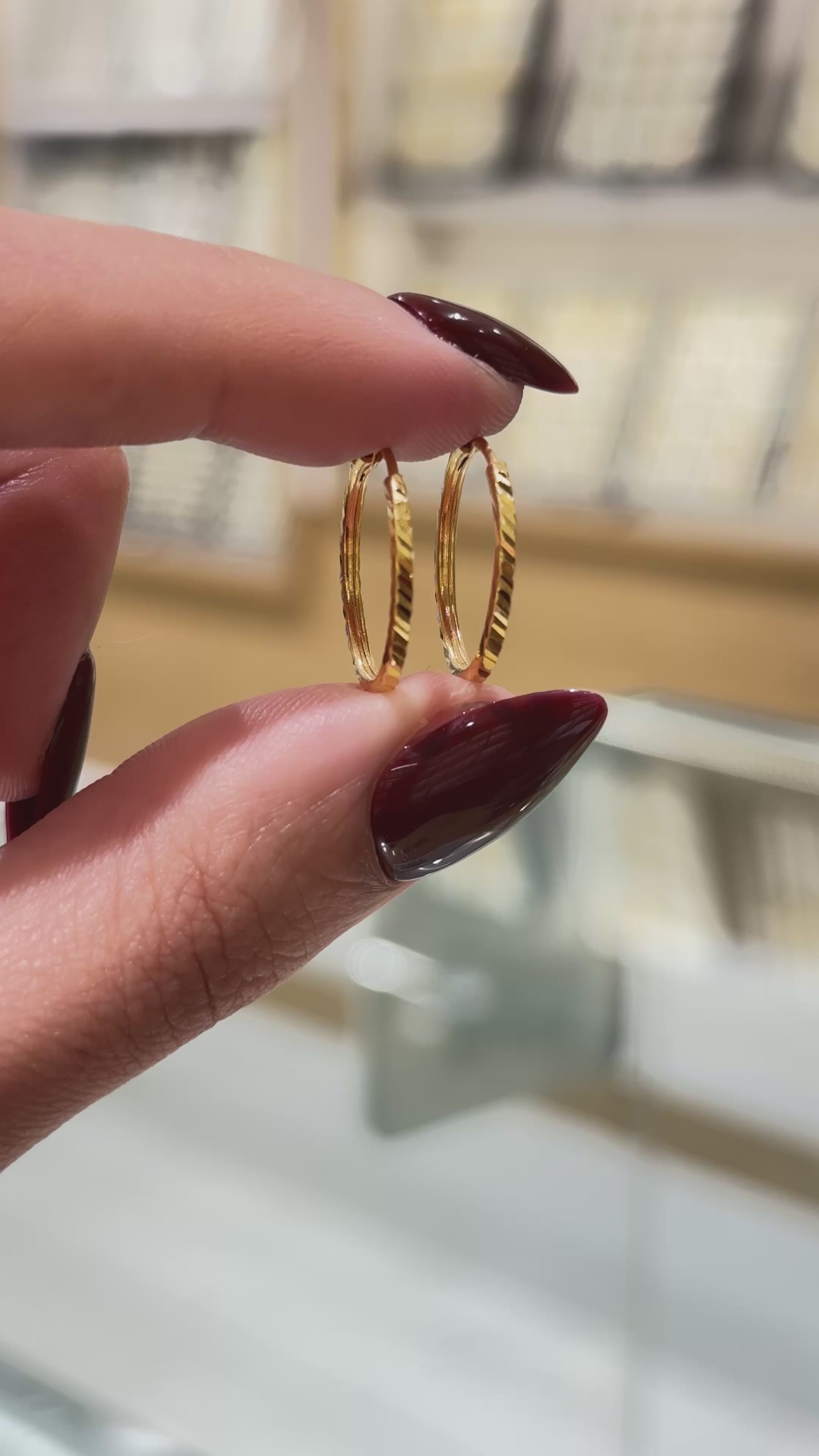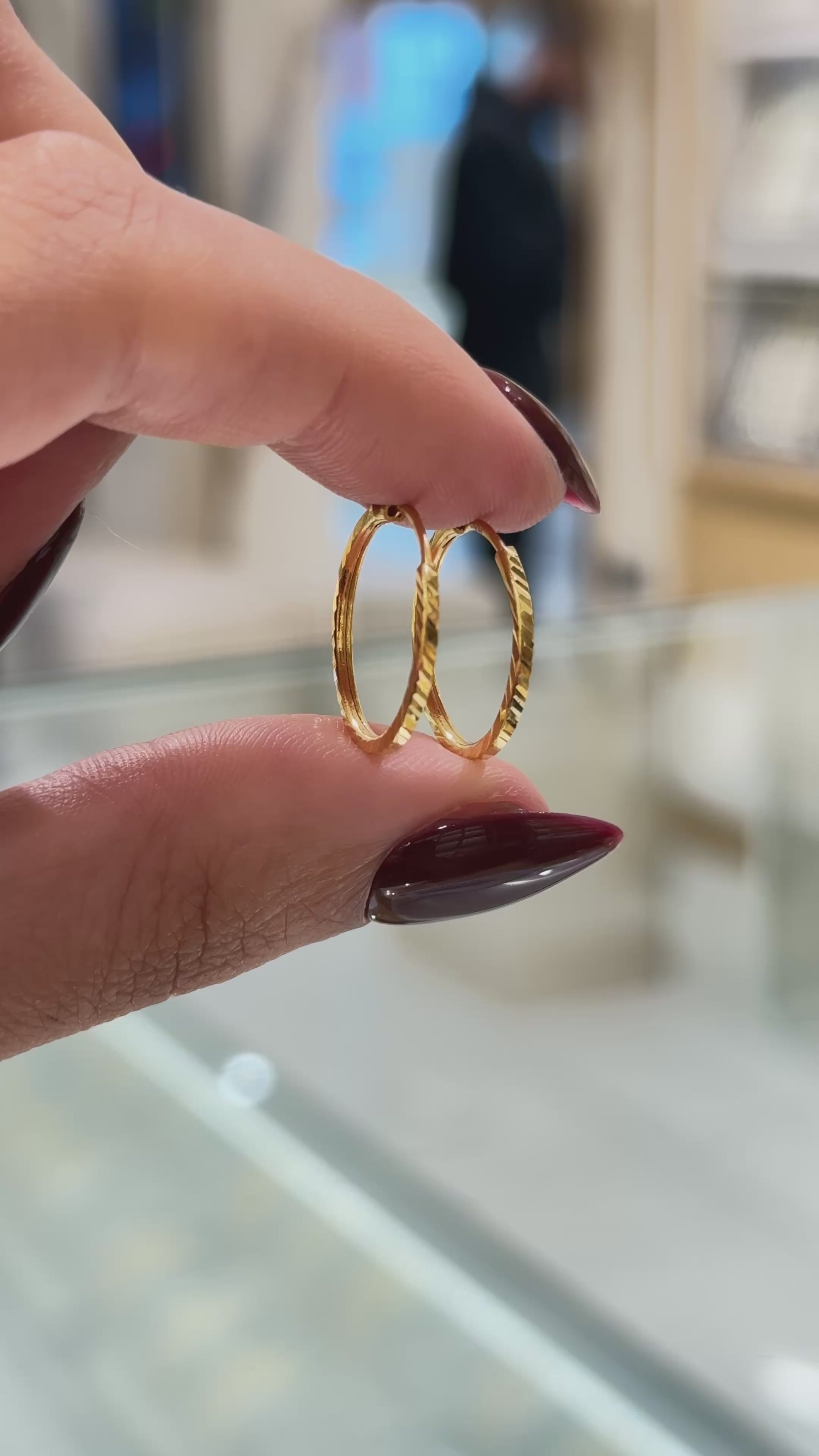 Experience the allure of pure sophistication with our 22ct Gold Hoop Earrings, meticulously handcrafted to embody timeless luxury. Each piece is sculpted from the finest 22-carat gold, radiating a warm, luminous glow that captures the essence of elegance. these hoops offer a harmonious balance of classic beauty and contemporary grace, an exquisite addition to any fine jewellery collection.