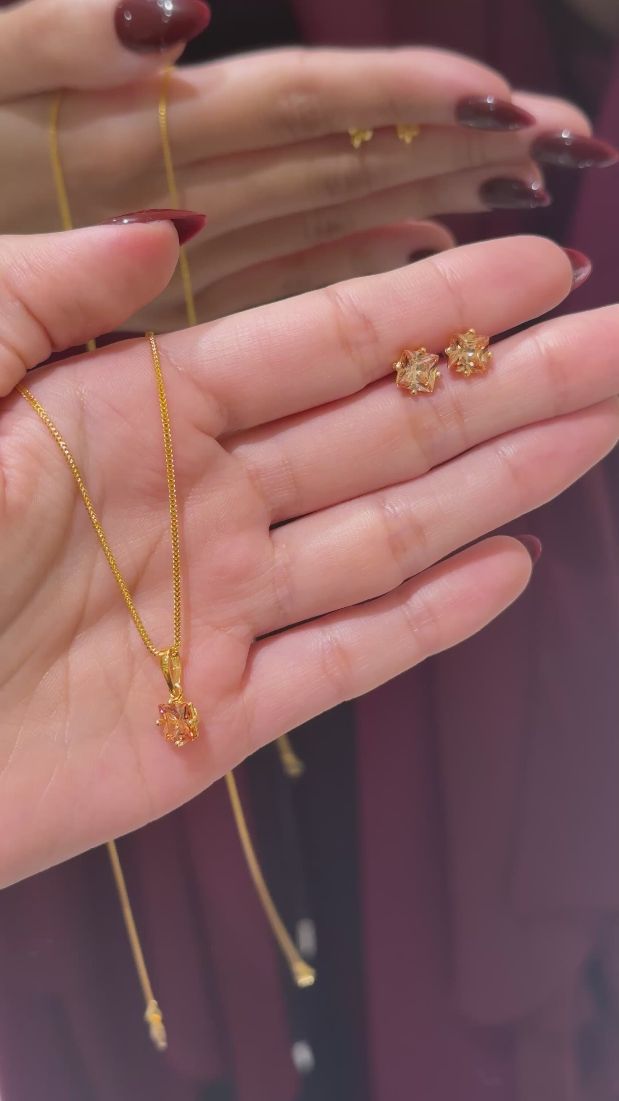 This elegant 22ct gold pendant set features sparkling CZ stones for a bright, eye-catching finish. The set includes a matching pair of earrings and can be purchased with or without a chain.
