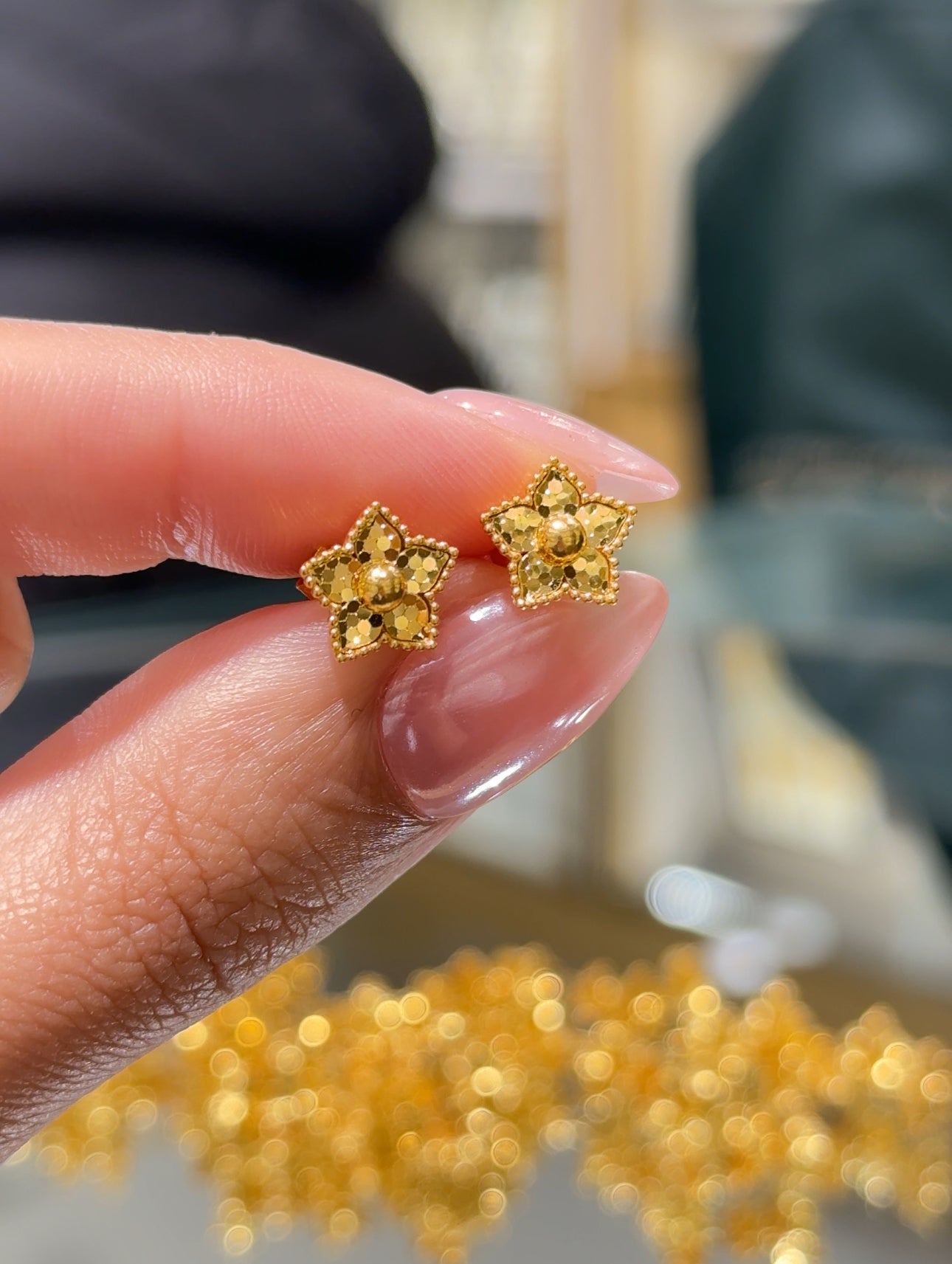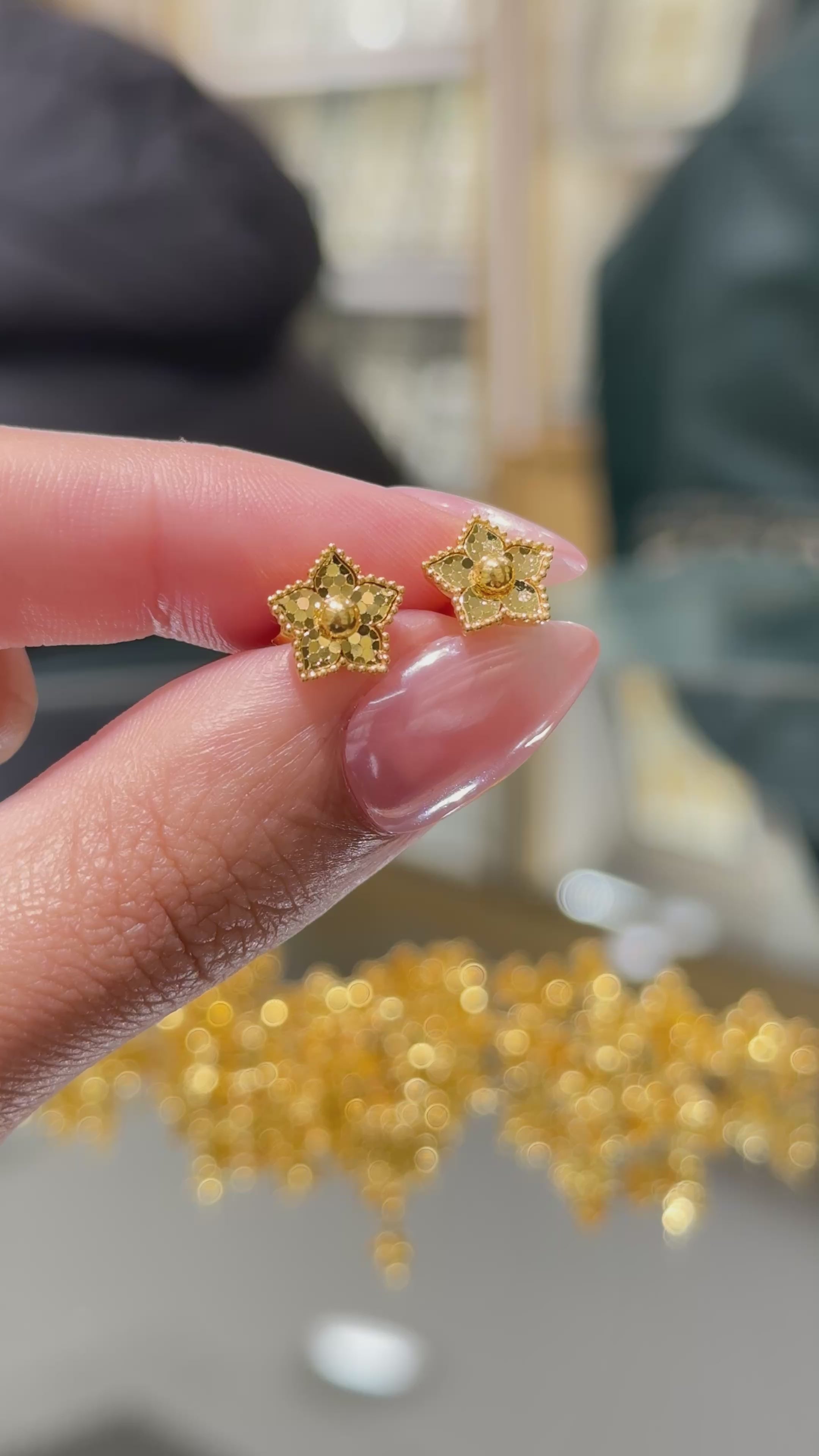 Delicate and charming, these small flower-shaped stud earrings add a touch of elegance to any look. Designed with simplicity in mind, they’re perfect for everyday wear or special occasions alike. Crafted for comfort and timeless style, these petite studs are a subtle statement of beauty.