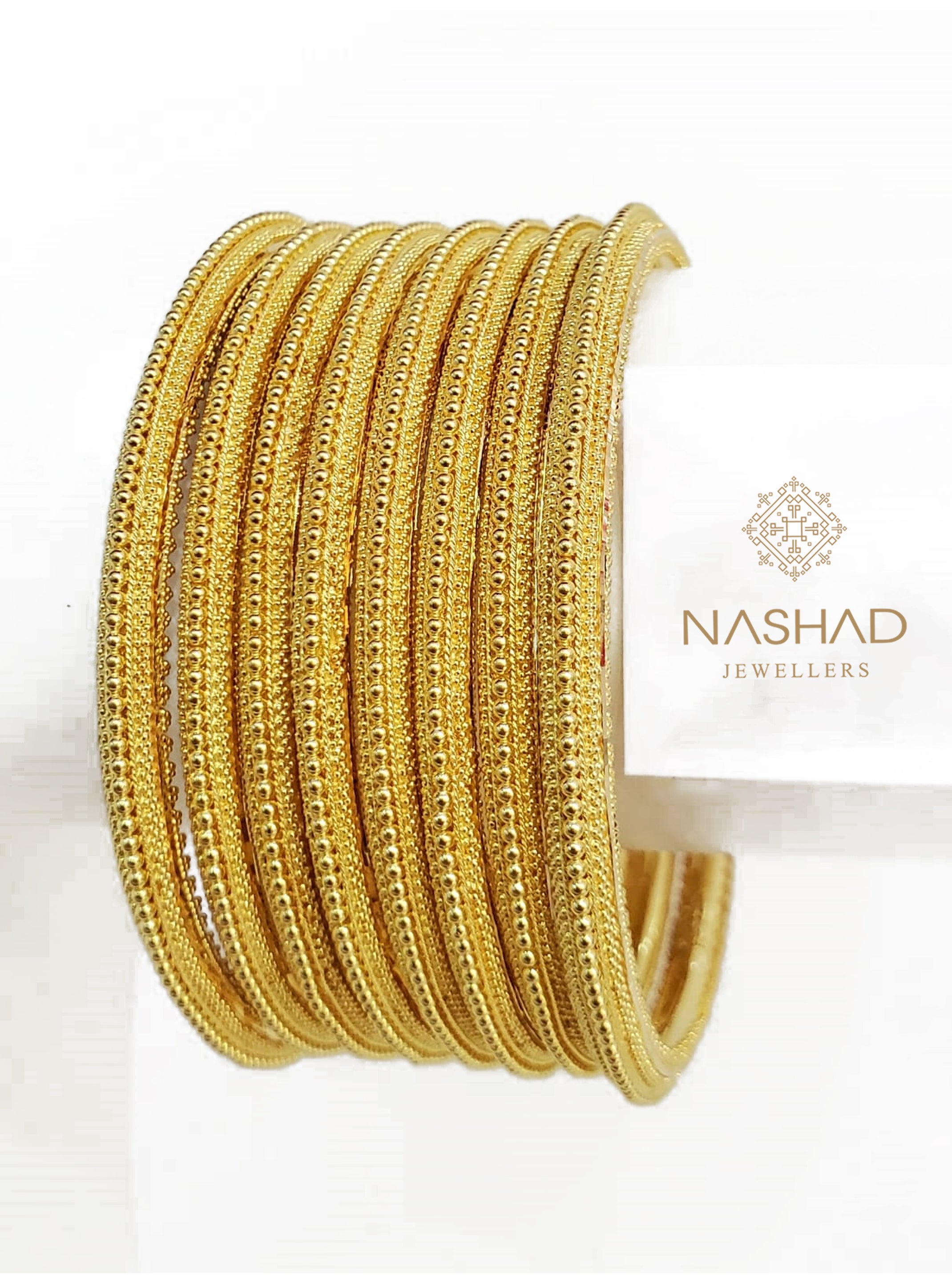 The Malika Bangle Set is a stunning 6+2 set, crafted from 22-carat gold and weighing approximately 105.8 grams. Designed in size 2.4, these bangles feature exquisite Kareh detailing, merging traditional artistry with modern sophistication. Custom-made for a flawless fit, with weight adjustments based on size, the Malika set is a captivating addition to any jewelry collection. For orders and inquiries, contact us on WhatsApp.