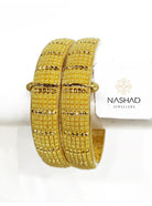 The Zahra Bangle Pair is a beautifully crafted set, made from 22-carat gold and weighing approximately 47 grams. Designed in size 2.6, these bangles feature detailed Kareh work, combining traditional elegance with modern charm. Custom-made to ensure a perfect fit, with weight adjustments based on size, the Zahra pair is an exquisite choice for any jewelry collection. For orders and inquiries, contact us on WhatsApp.