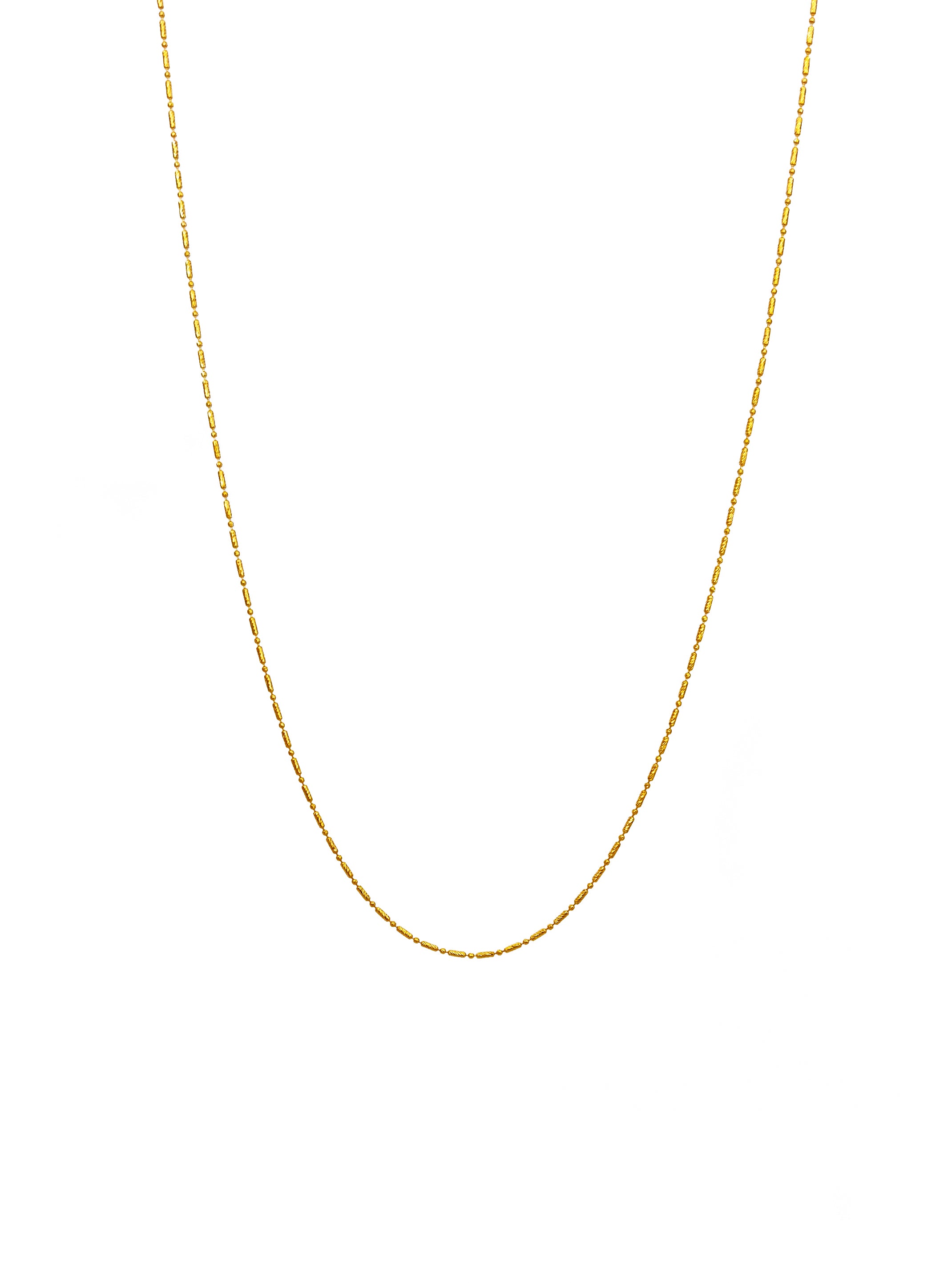 The Orion necklace, crafted from 22ct gold and weighing 4.5 grams, features a sleek bead style design. Measuring 10 inches in length, this necklace is adorned with smooth, polished gold beads that create a classic and elegant look. The even spacing and refined simplicity of the beads highlight the warmth and richness of the 22ct gold, making the Orion necklace a versatile piece that adds a touch of sophistication to any outfit. Ideal for both everyday wear and special occasions, the Orion necklace seamlessly combines timeless style with modern elegance.