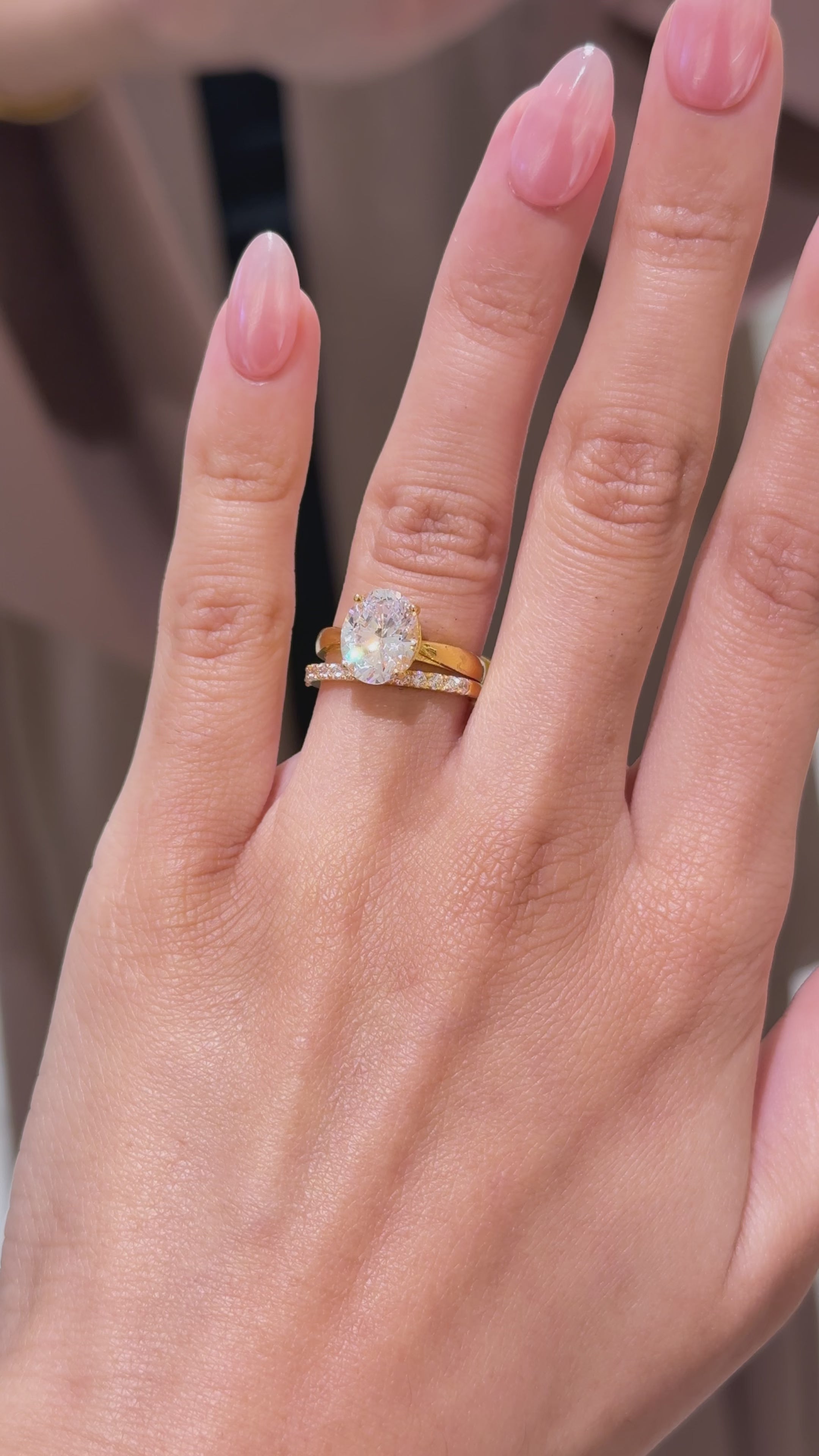 Crafted in radiant 22ct gold, The Duet Halo Set is a striking two-piece ring design that marries timeless elegance with bold statement. Featuring a dazzling oval-cut cubic zirconia centre stone surrounded by a delicate halo, the upper ring exudes brilliance and sophistication. Paired seamlessly with a sleek, CZ-studded band, this set creates a perfectly balanced silhouette—ideal for modern brides or lovers of refined luxury. Whether worn together or separately, The Duet Halo Set promises to elevate your jewellery collection with an unforgettable sparkle.