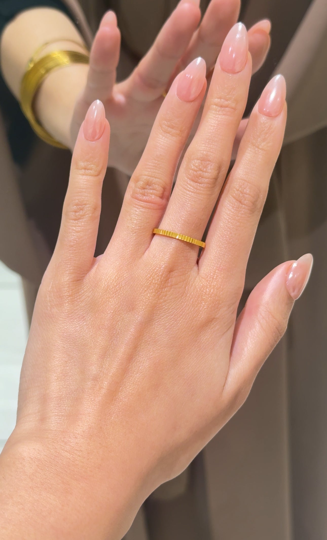 Crafted in luminous 22ct gold, this elegant ring is a timeless piece designed for effortless versatility. Its smooth, refined band shines beautifully when worn alone, offering a minimalist touch of luxury. Slim yet striking, it also stacks seamlessly with other favourites, making it the perfect addition to any curated collection. Whether styled solo for understated sophistication or layered for a bolder look, this 22ct gold ring brings radiant warmth to every moment.