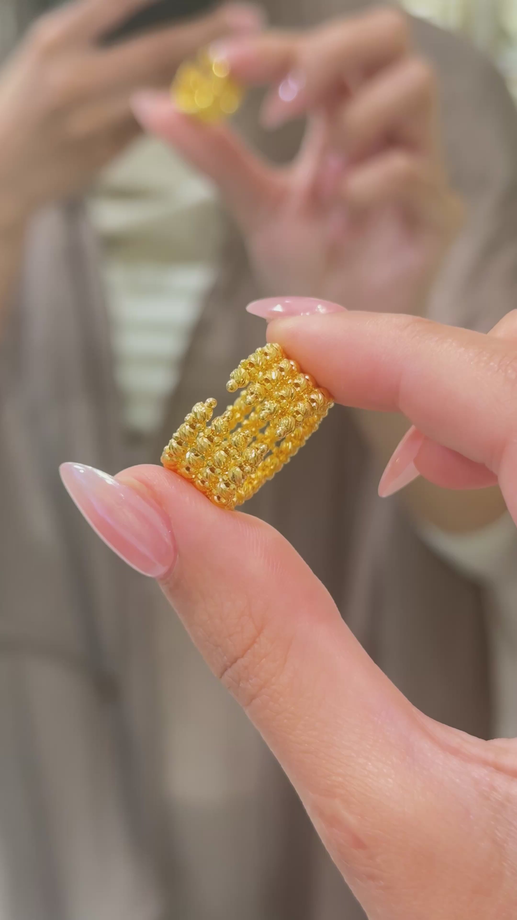 Elevate your elegance with this exquisite 22ct Gold Cluster Design Ring, available only at NJ. Crafted from rich, radiant 22-carat gold, this piece features a one-row cluster design that brings together classic charm and modern sophistication. Each element is meticulously arranged to create a bold yet graceful statement, making it ideal for both everyday luxury and special occasions.