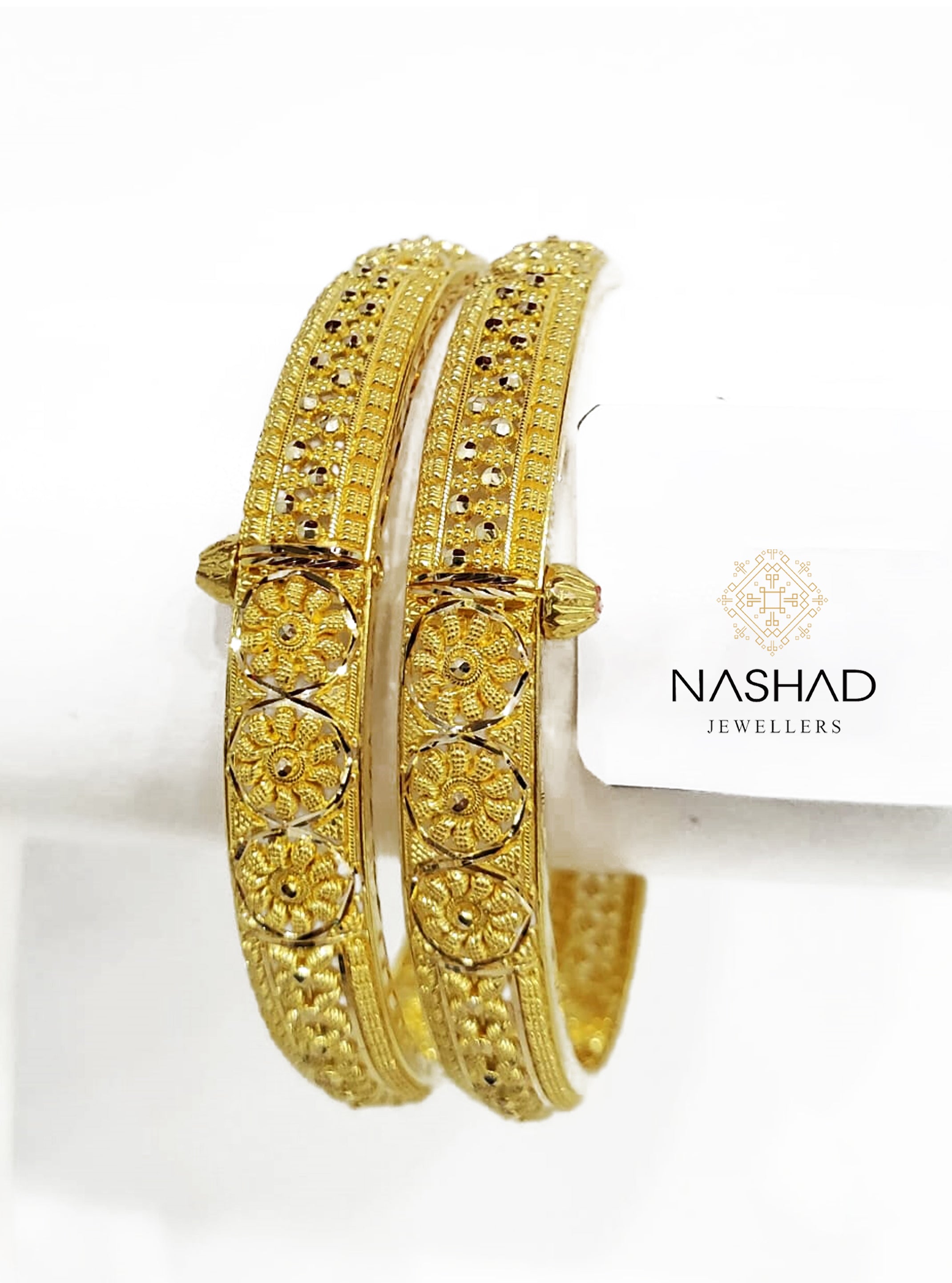 Amani Bangle Pair - 22ct Gold, Approx. 35g (Size 2.4)