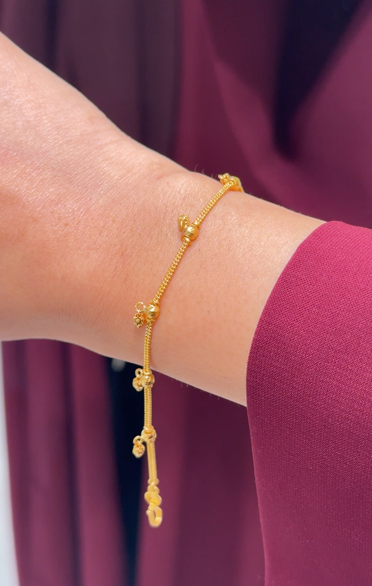 Ameera, meaning “princess,” is a regal design that captures royal poise. With its 22ct gold finish, it embodies dignity and grace—a jewel that crowns your wrist with elegance.