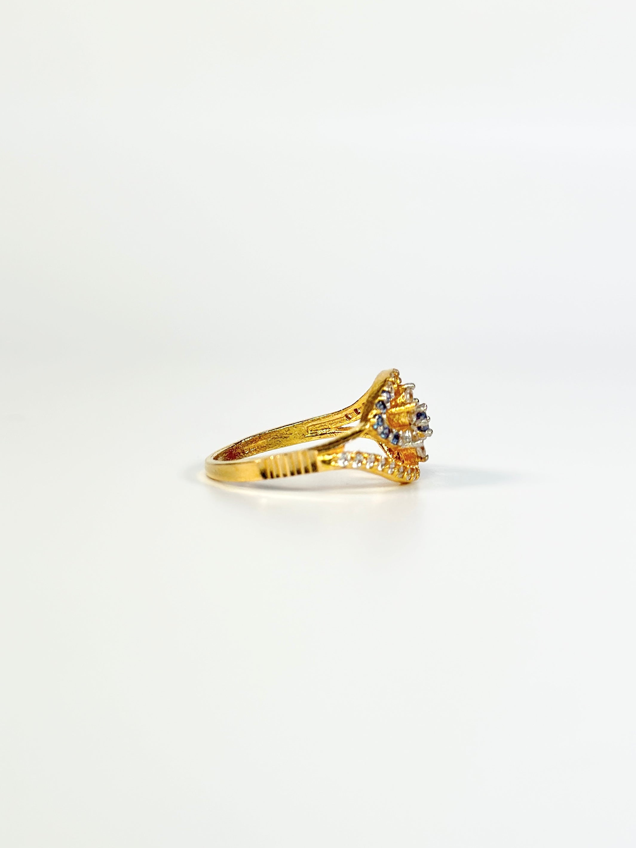 Indulge in the allure of pure gold and the brilliance of a marquise cut cubic zirconia stone with our 22ct Gold Ring. It is a testament to refined taste and exquisite craftsmanship, making it a perfect choice for those who appreciate the finer things in life. Elevate your style and make a statement with this remarkable ring that combines beauty, luxury, and value.