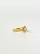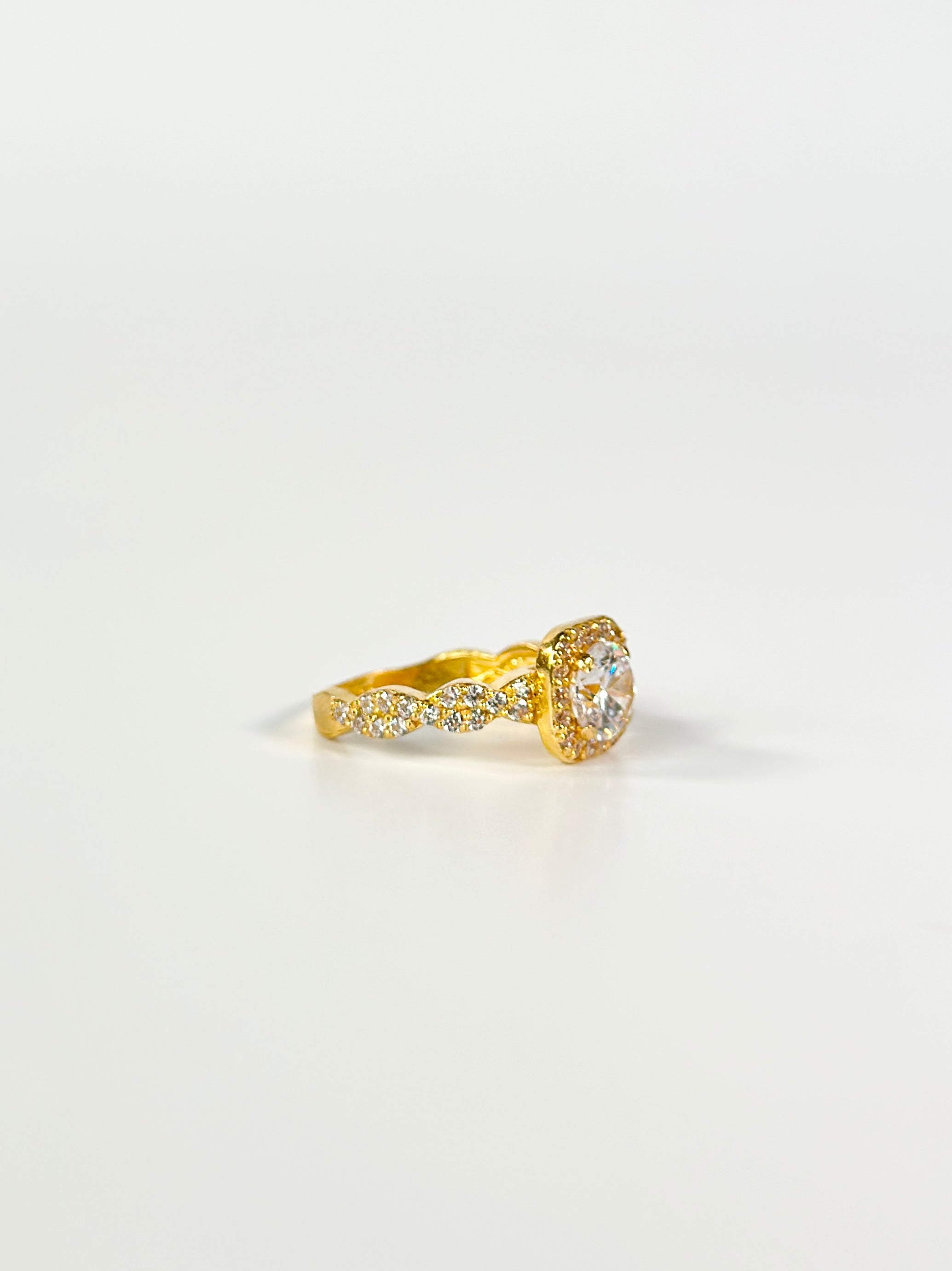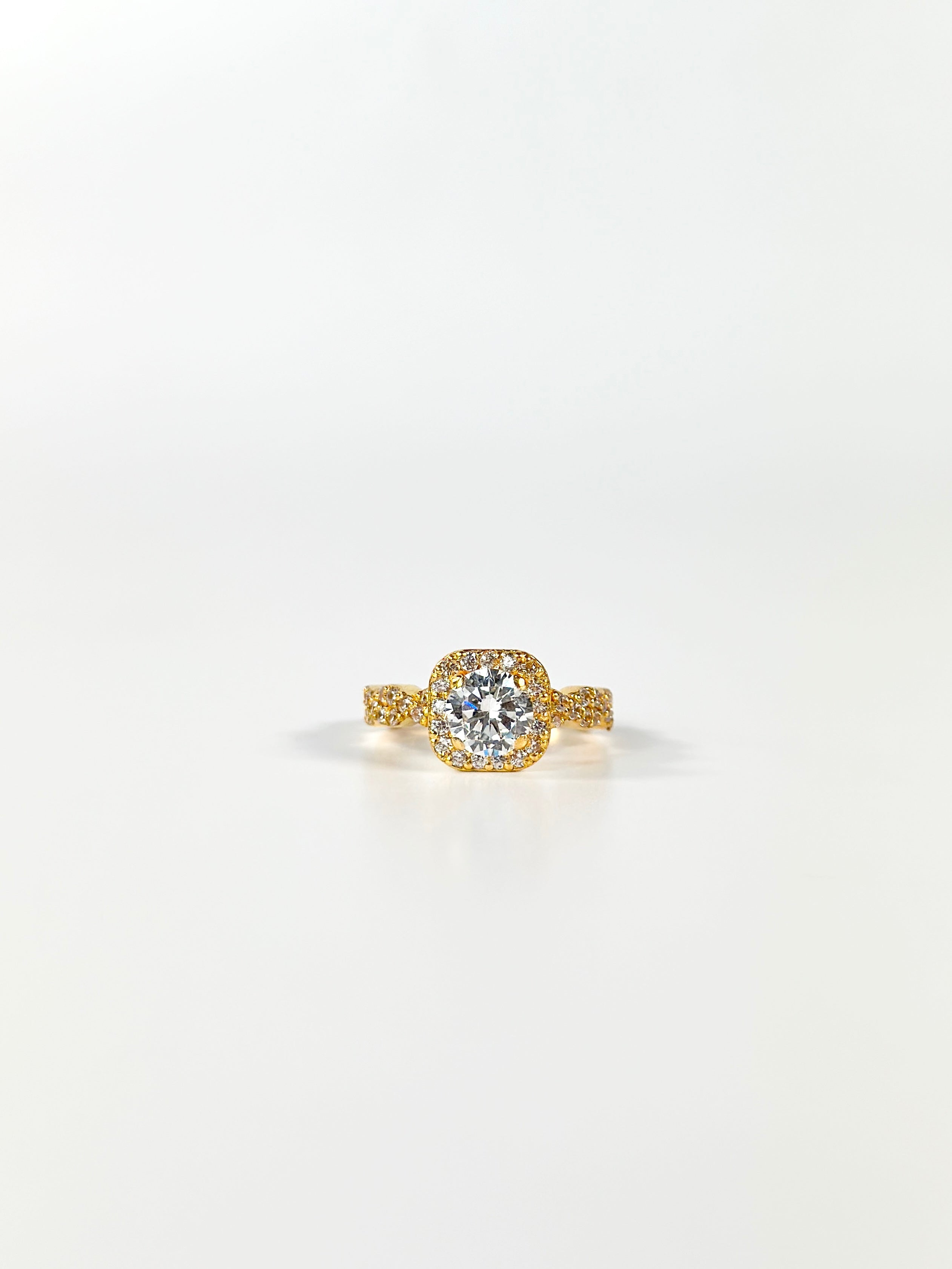 Indulge in the allure of pure gold and the brilliance of a radiant cut cubic zirconia stone with our 22ct Gold Ring. It is a testament to refined taste and exquisite craftsmanship, making it a perfect choice for those who appreciate the finer things in life. Elevate your style and make a statement with this remarkable ring that combines beauty, luxury, and value.