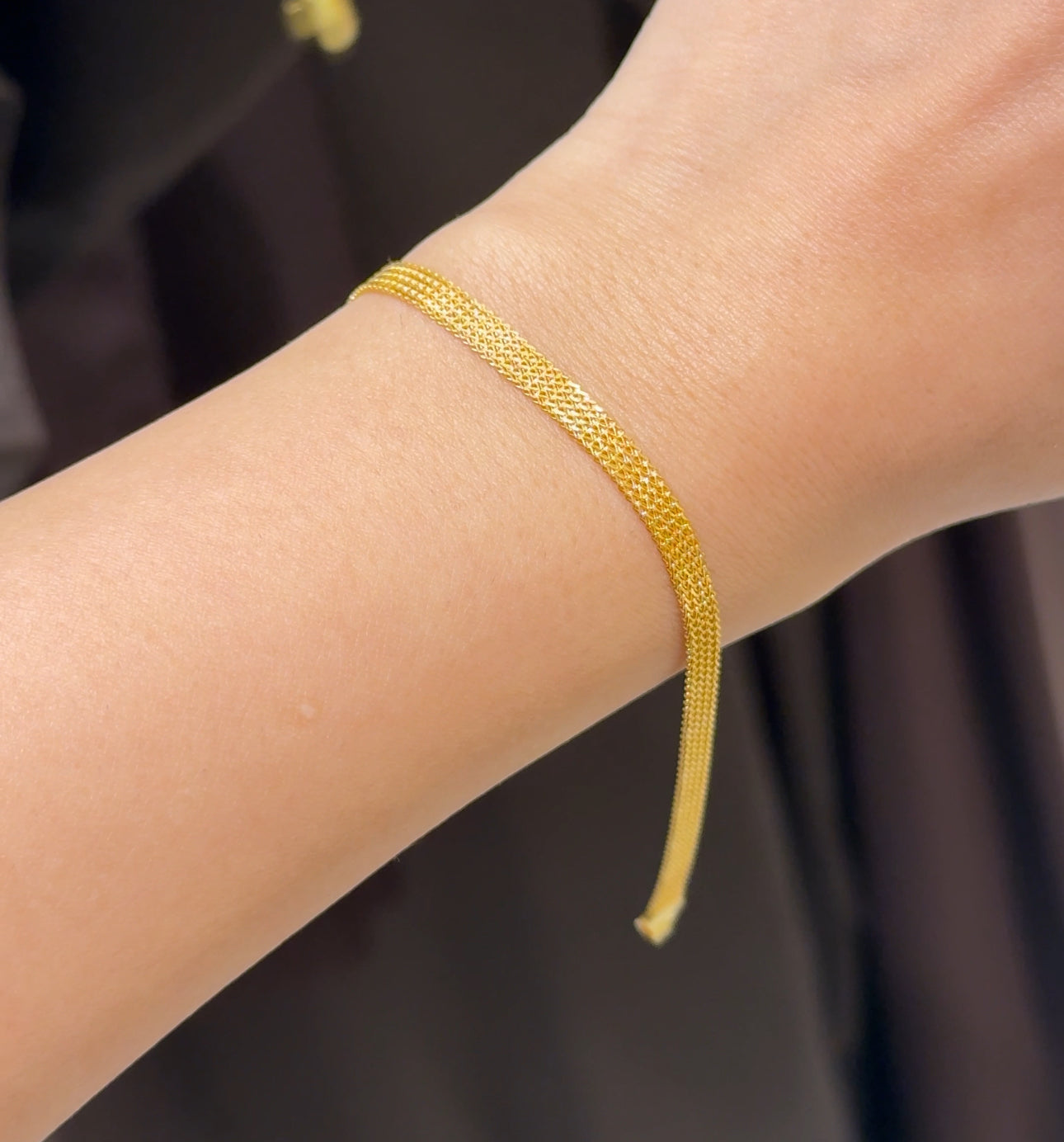 This elegant 22ct gold bracelet is crafted from high-quality 22-carat gold, offering a rich, radiant shine and a refined finish. Its classic design makes it perfect for everyday wear or special occasions, adding a touch of luxury to any look. A beautiful staple piece for any fine jewellery collection.