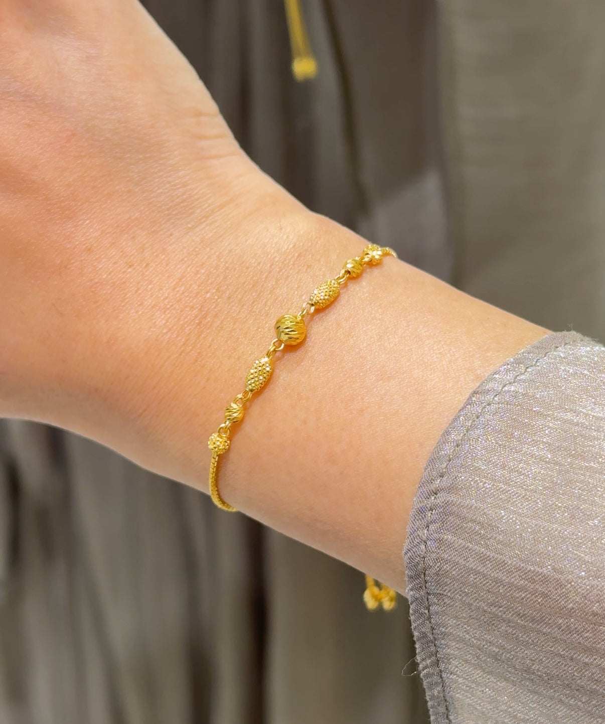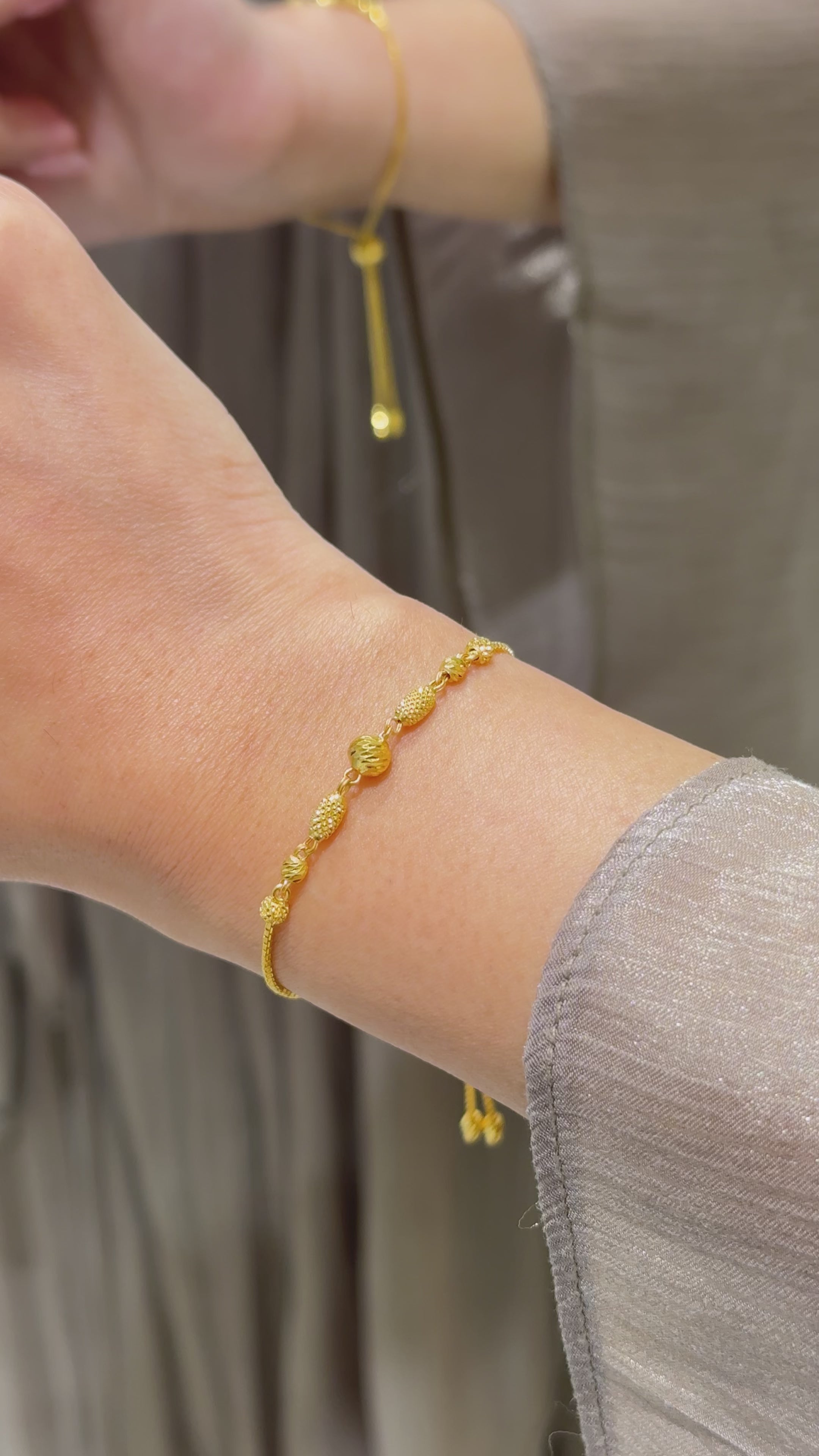 Rich in heritage and glowing with artistry, Zari Glow pays homage to the intricate craftsmanship of traditional gold thread work. This bracelet features delicate textures and fine detailing, echoing the beauty of handwoven Zari. A perfect statement of cultural luxury in 22ct gold.